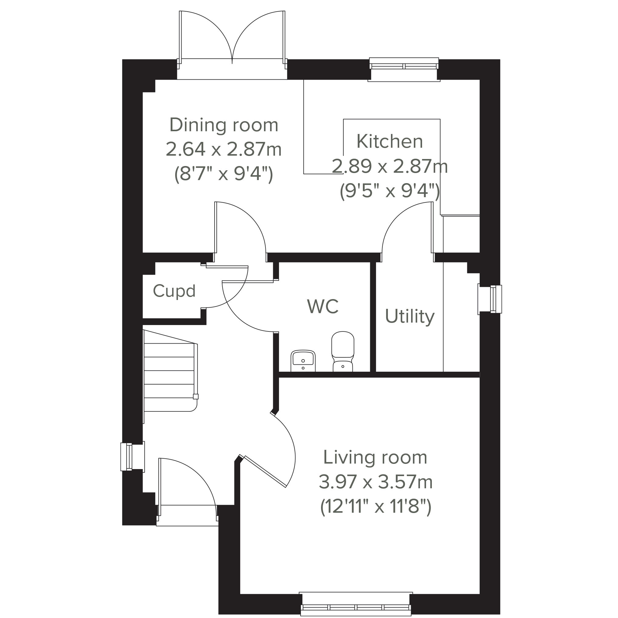Enjoy the best of modern living in this popular four-bedroom home. The Greenwoods bright front-aspect living room, spacious kitchen/dining room, separate utility room, handy storage cupboard and downstairs WC complete the ground floor. The first floor consists of three bedrooms - bedroom two with an en suite and a family bathroom. On the second floor, bedroom one has an en suite and further storage.