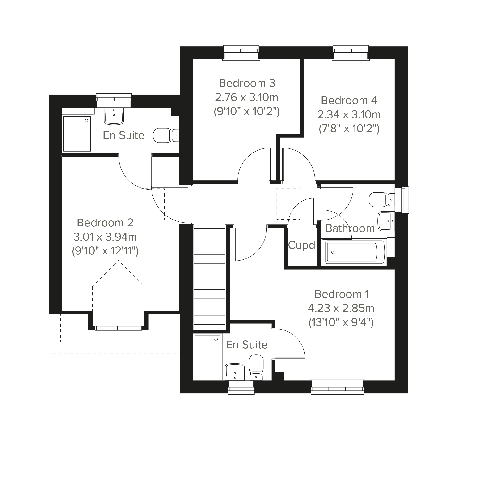 The drive-through space on the ground floor of the Galloway DT, allows for space for a fourth bedroom above it. This is a family home plus. The extra space, with its ensuite facilities, along with two further bathrooms, makes this new home a wonderful choice for family life, for friends and relatives coming to stay, or for working from home.