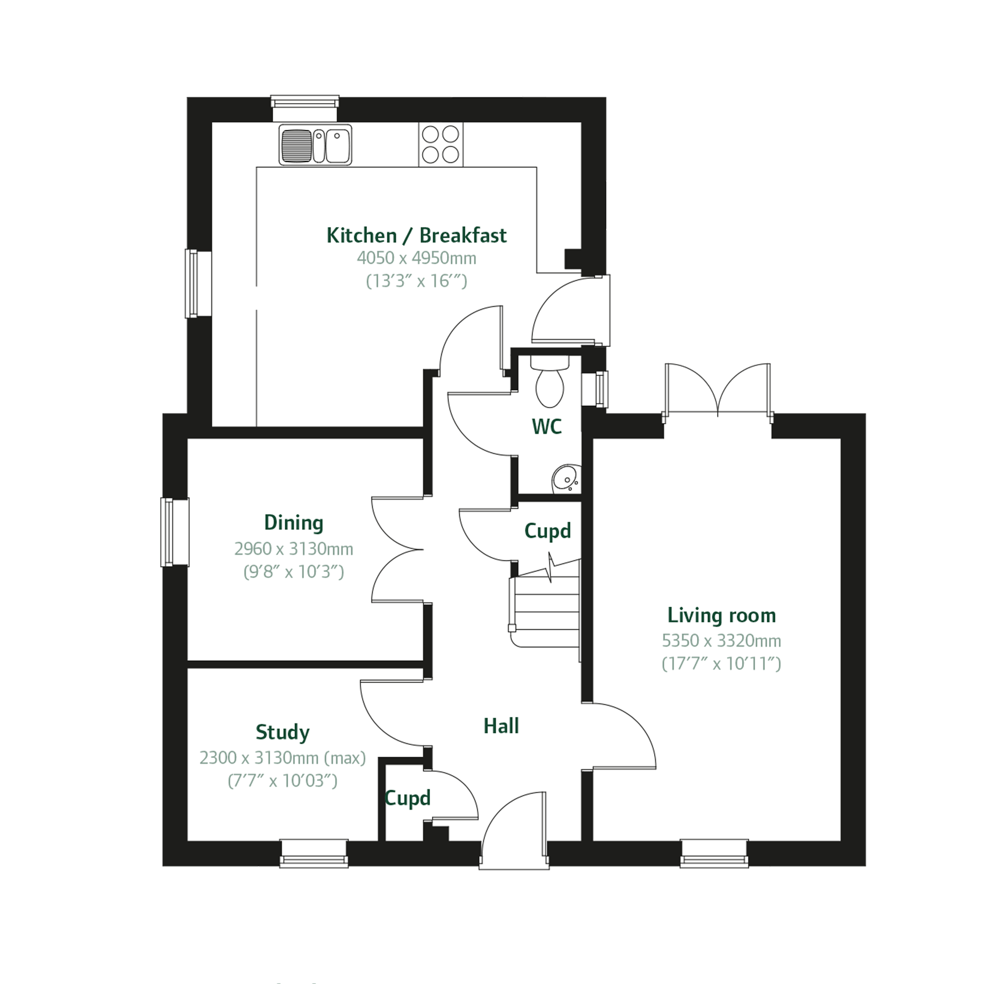 The Kellet features a bright double-aspect living room with French doors opening into the garden. Theres a spacious kitchen/breakfast room with outside access, separate dining room and a study. The WC and storage cupboards ensure its practical as well as stylish. Upstairs youll find four good sized bedrooms, including bedroom one with an en suite, a family-sized bathroom and a further storage cupboard.