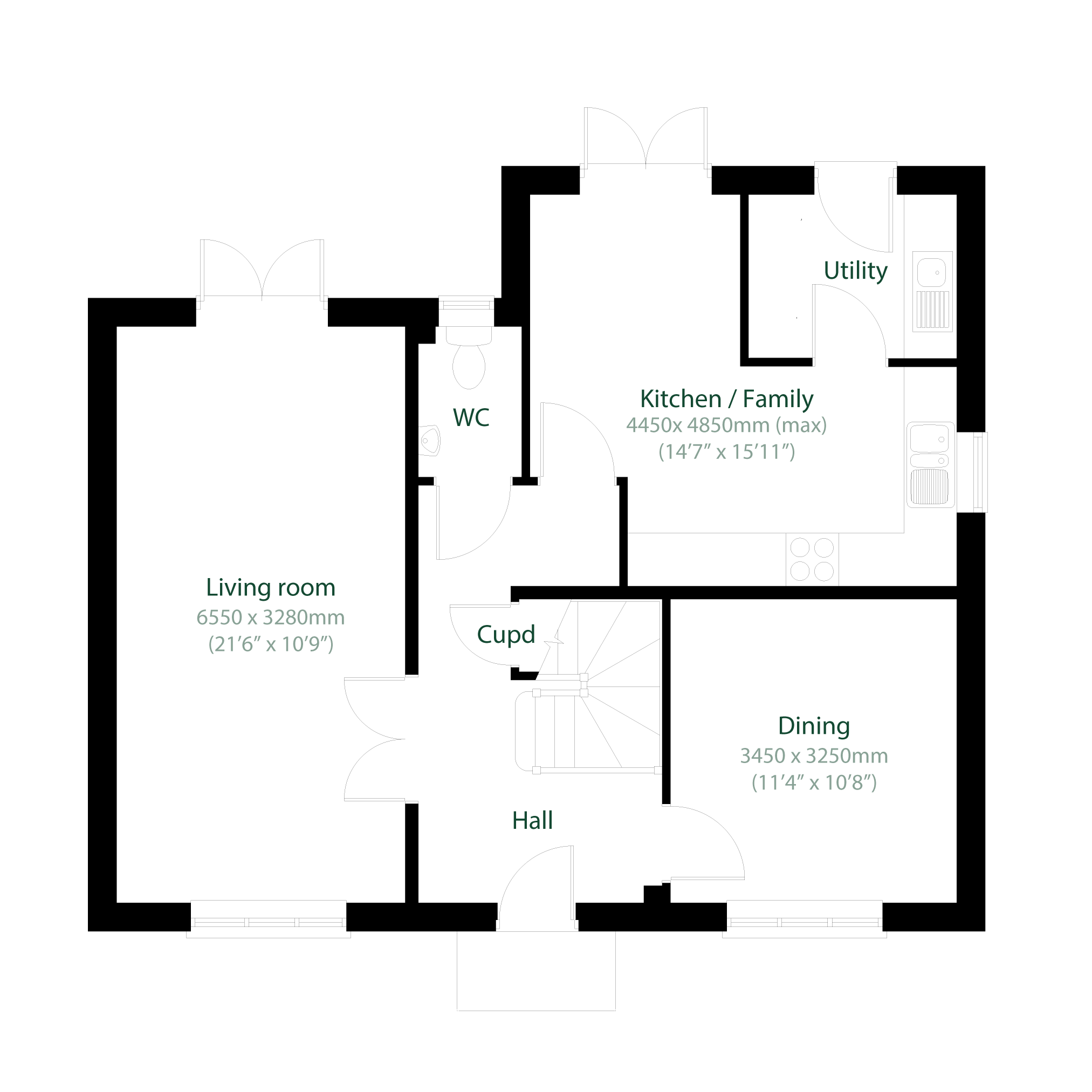 The Hawker is a four-bedroom detached family home ideal for families. The light and airy kitchen/family room enjoys an open aspect through French doors to the rear garden. Theres a bright living room with French doors leading into the garden, separate dining room, downstairs WC and handy storage cupboards. Upstairs there are four bedrooms, with bedroom one benefiting from an en suite, and a modern-fitted family bathroom.