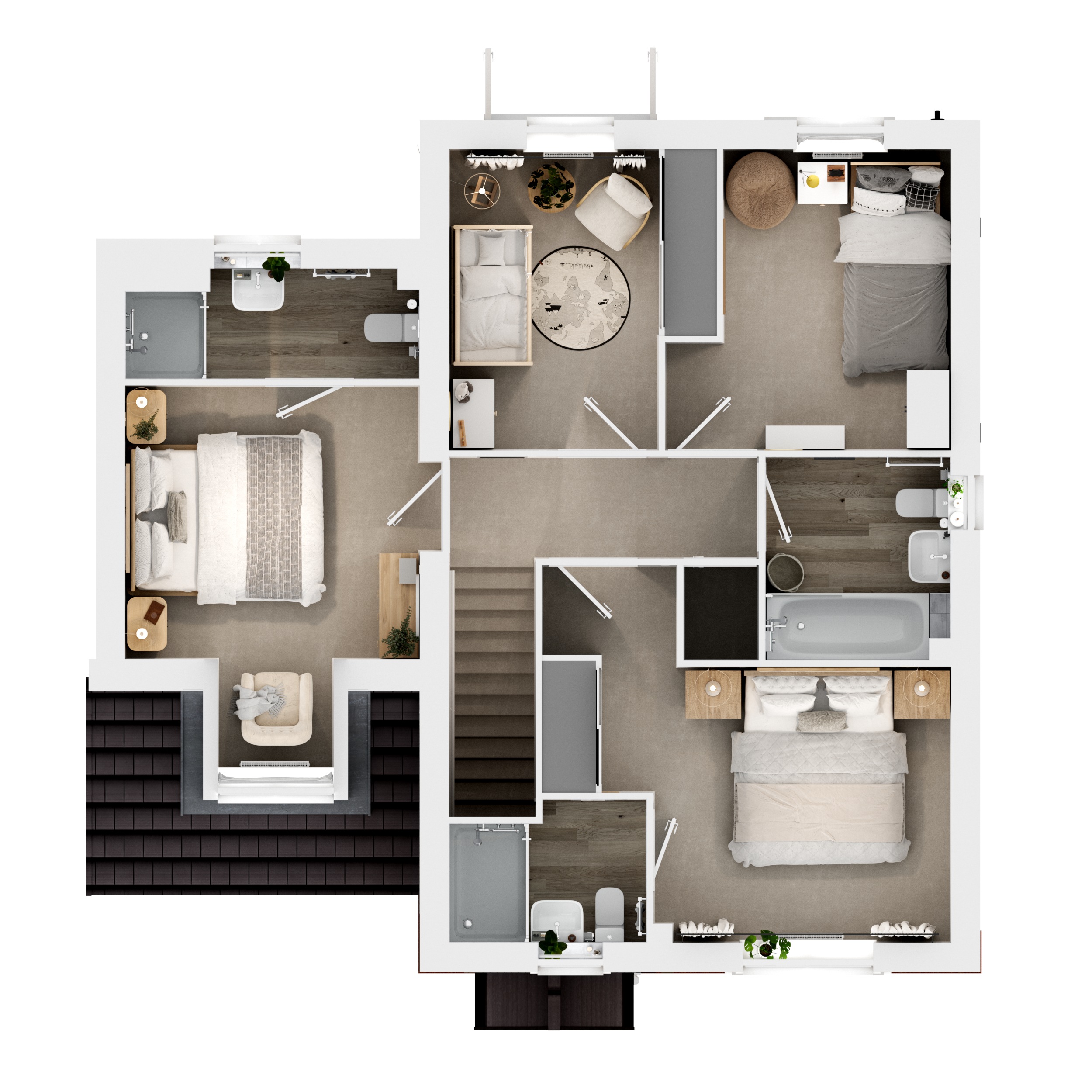 The drive-through space on the ground floor of the Galloway DT, allows for space for a fourth bedroom above it. This is a family home plus. The extra space, with its ensuite facilities, along with two further bathrooms, makes this new home a wonderful choice for family life, for friends and relatives coming to stay, or for working from home.