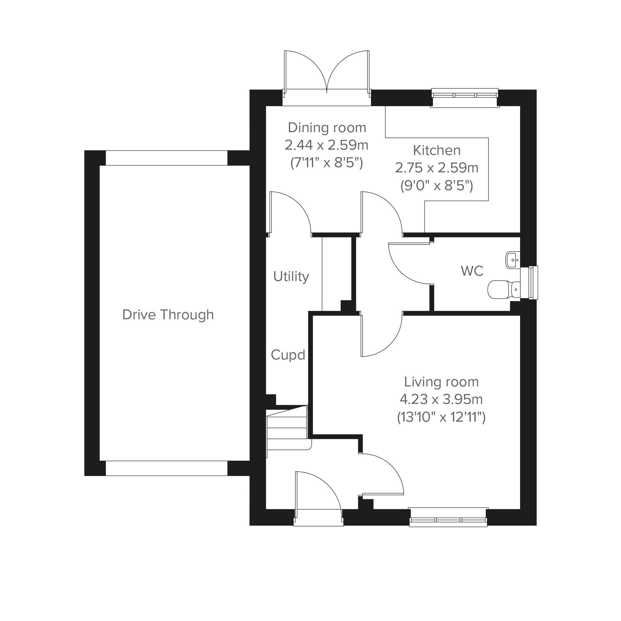 - Council tax band: Not made available by local authority until post-occupation