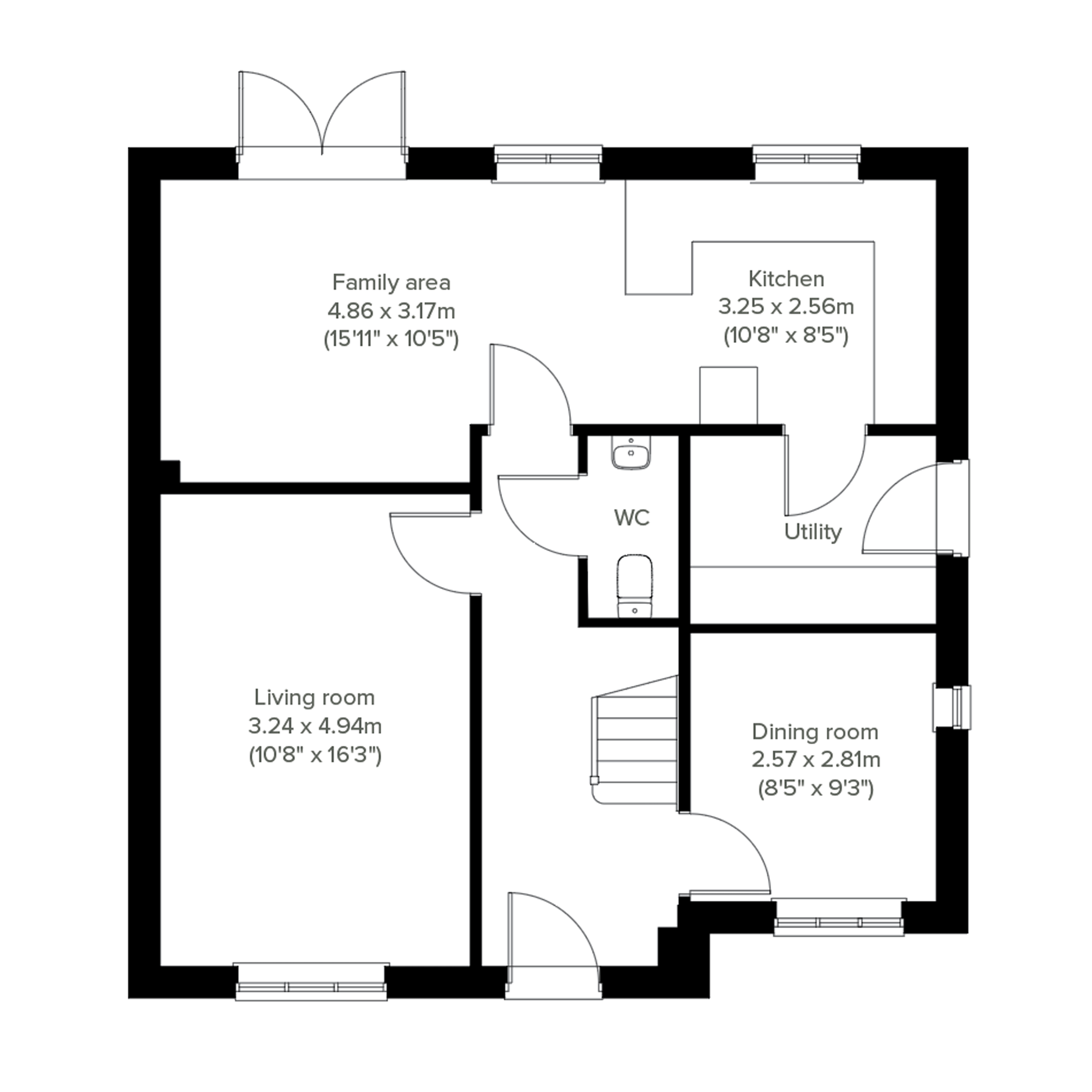 The Deepdale has a lovely balanced feel, created by a central entrance hall and generous living space to either side. The third, smaller room would make a great home office.