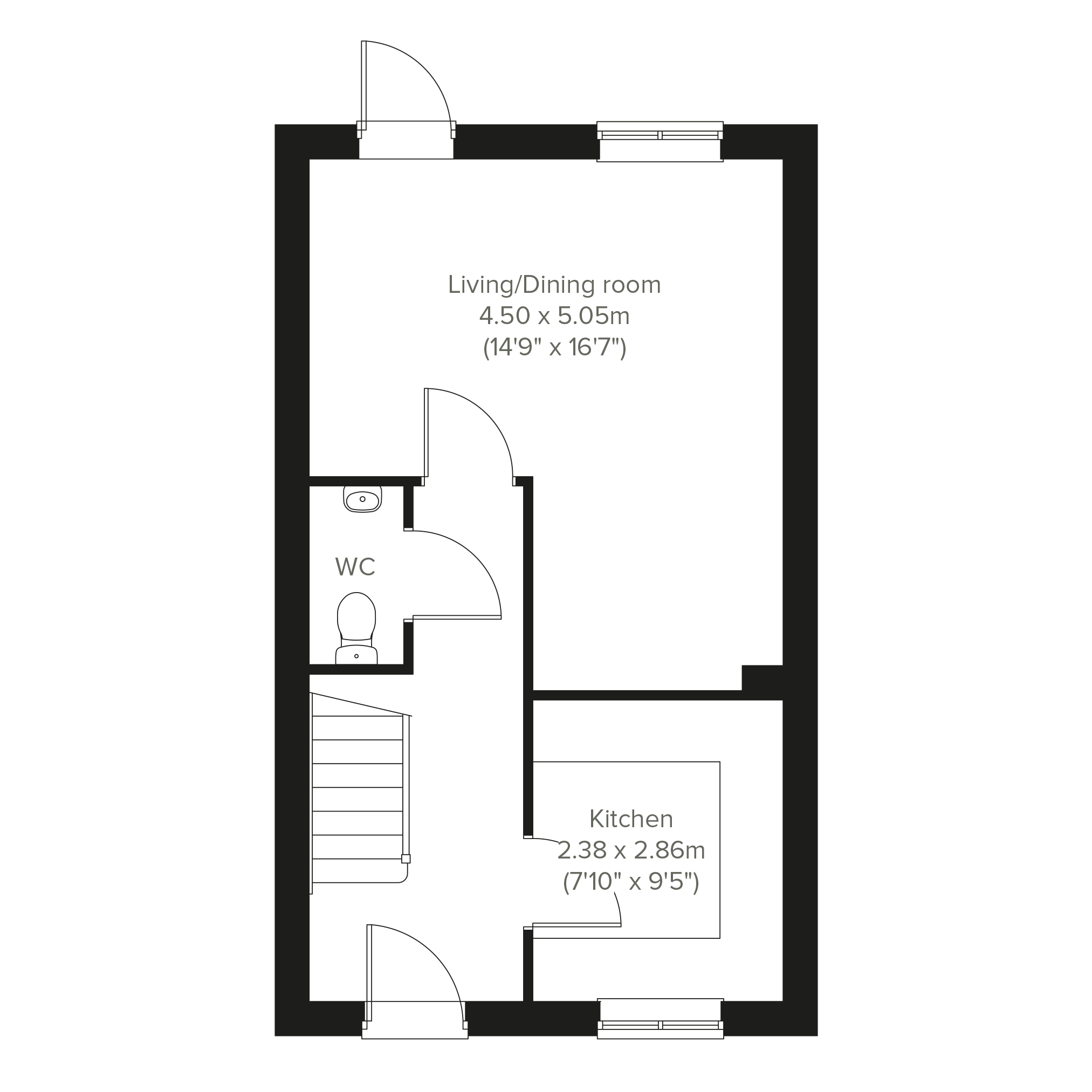 The Rochester is a two-bedroom home, perfect for couples or young families. The ground floor boasts a modern kitchen, a spacious living/dining room with doors leading to the garden and a convenient WC. Upstairs, there are two bedrooms, a family bathroom and two further storage cupboards, making this home both practical and stylish.