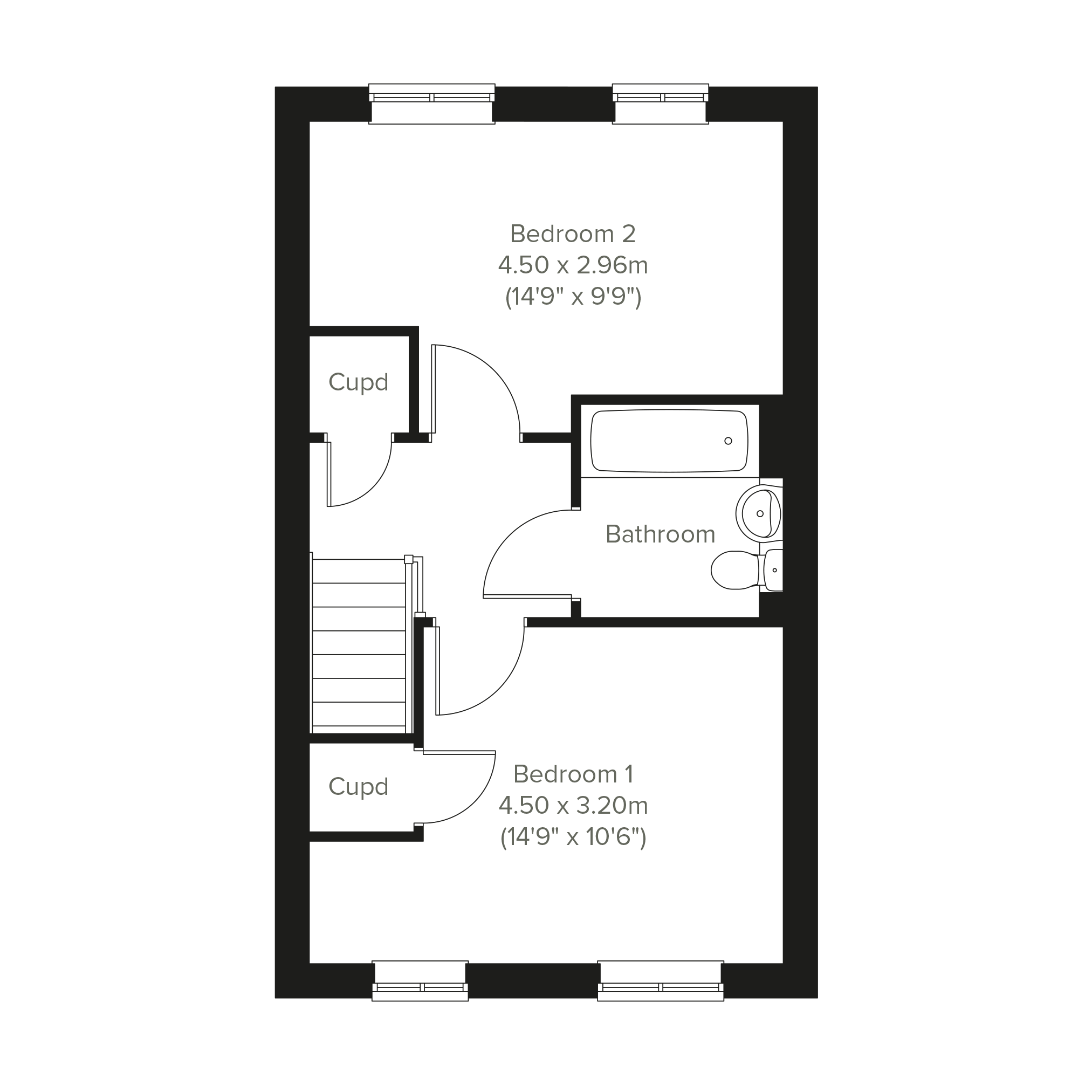 The Rochester is a two-bedroom home, perfect for couples or young families. The ground floor boasts a modern kitchen, a spacious living/dining room with doors leading to the garden and a convenient WC. Upstairs, there are two bedrooms, a family bathroom and two further storage cupboards, making this home both practical and stylish.