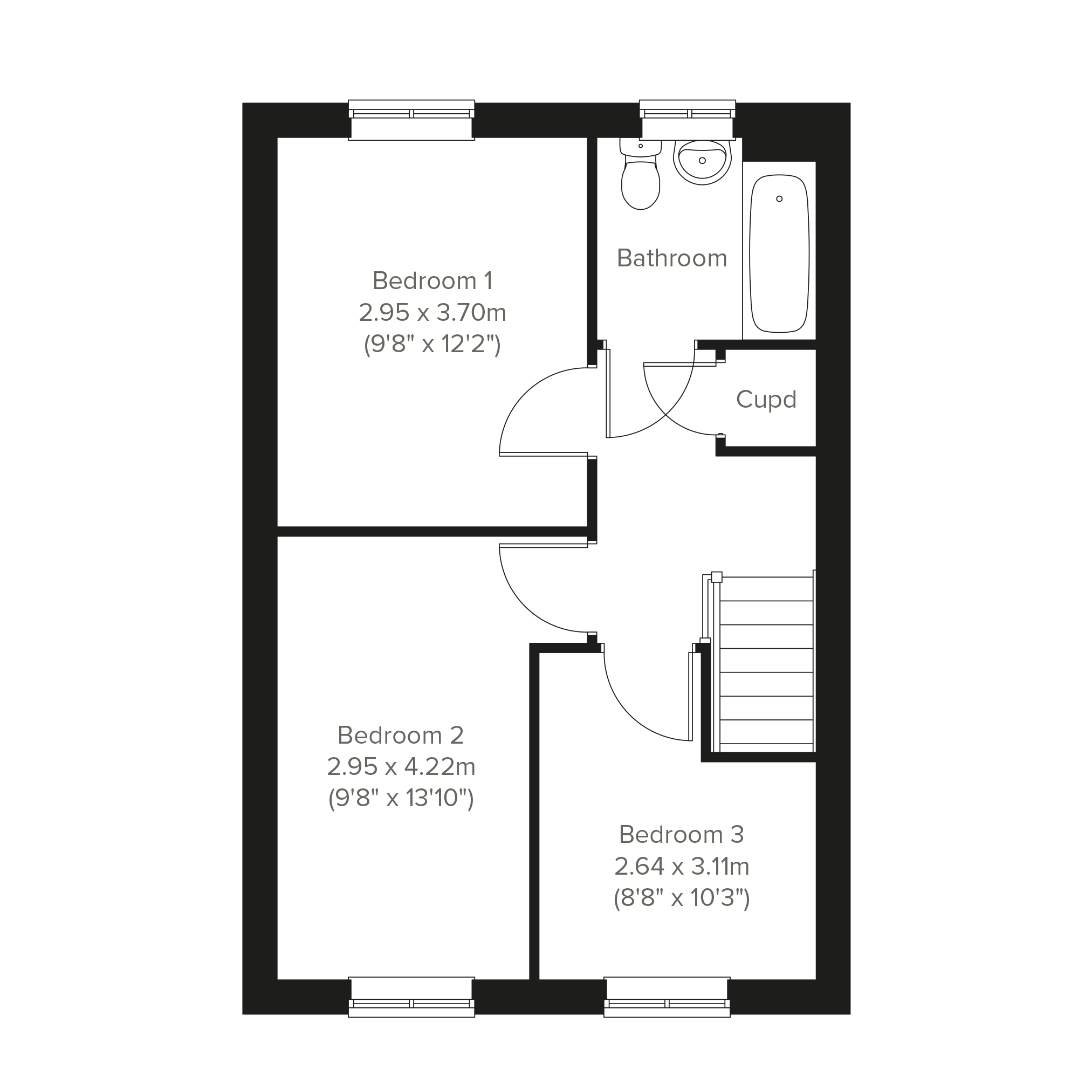The Chelmsford is a well-designed three-bedroom home, ideal for modern family living. The ground floor features a stylish kitchen, a spacious living/dining room with doors opening onto the garden, a handy downstairs WC and useful storage. Upstairs, you`ll find three bedrooms, a family bathroom and an additional storage cupboard.