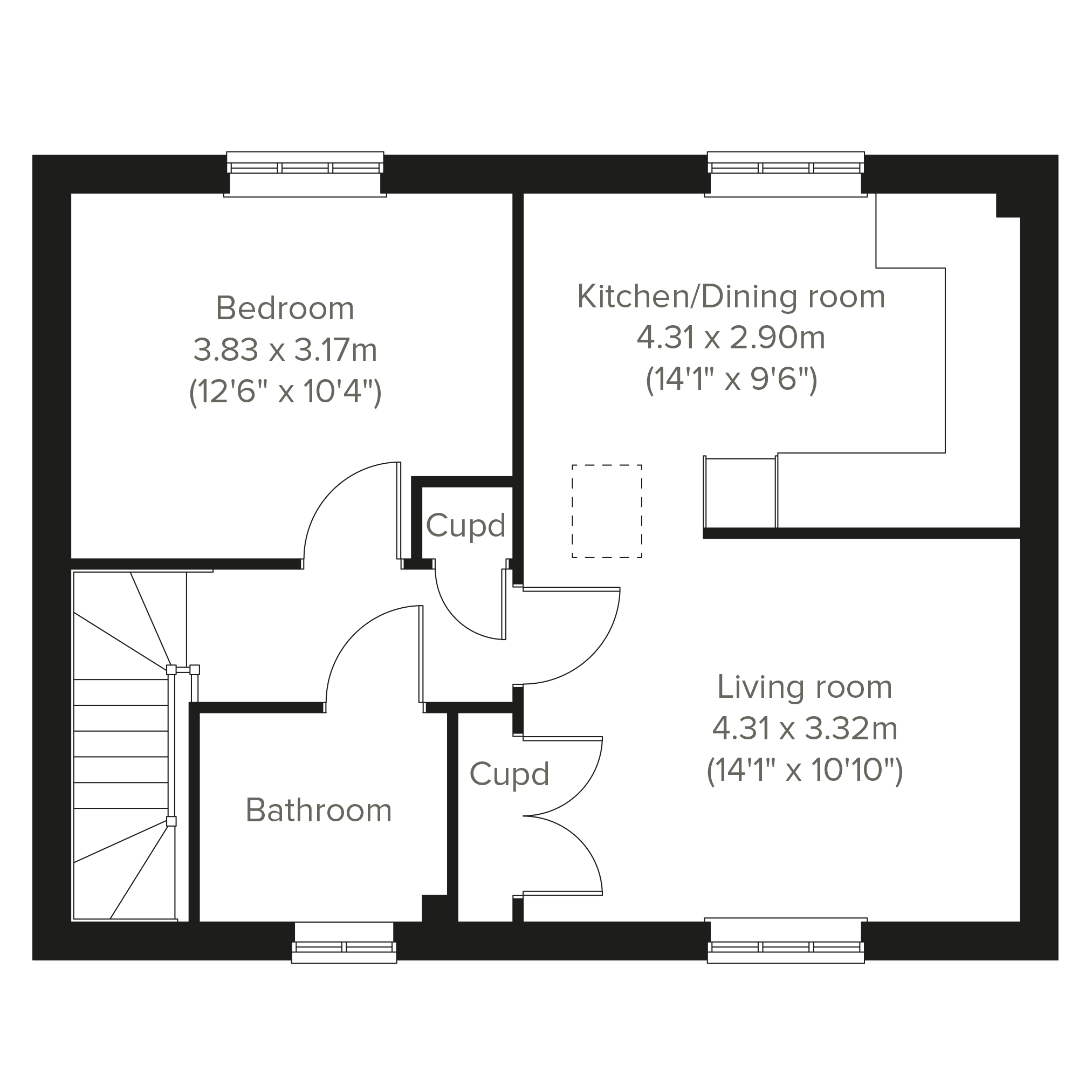 - Council tax band: Not made available by local authority until post-occupation