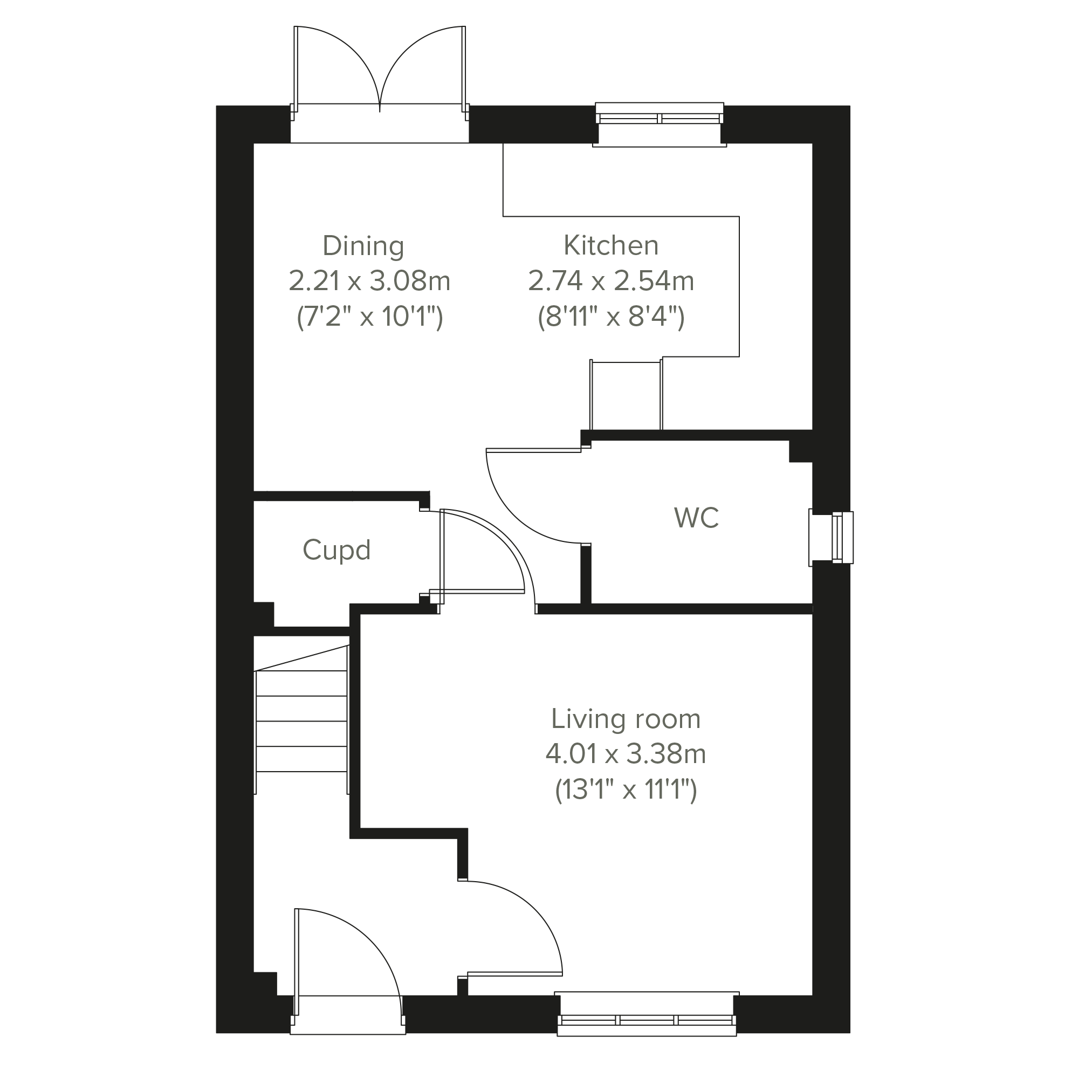 The Lambridge is a four-bedroom family home with a spacious kitchen/dining area with French doors to the rear garden, a bright living room with a bay window, utility room, and a downstairs WC.