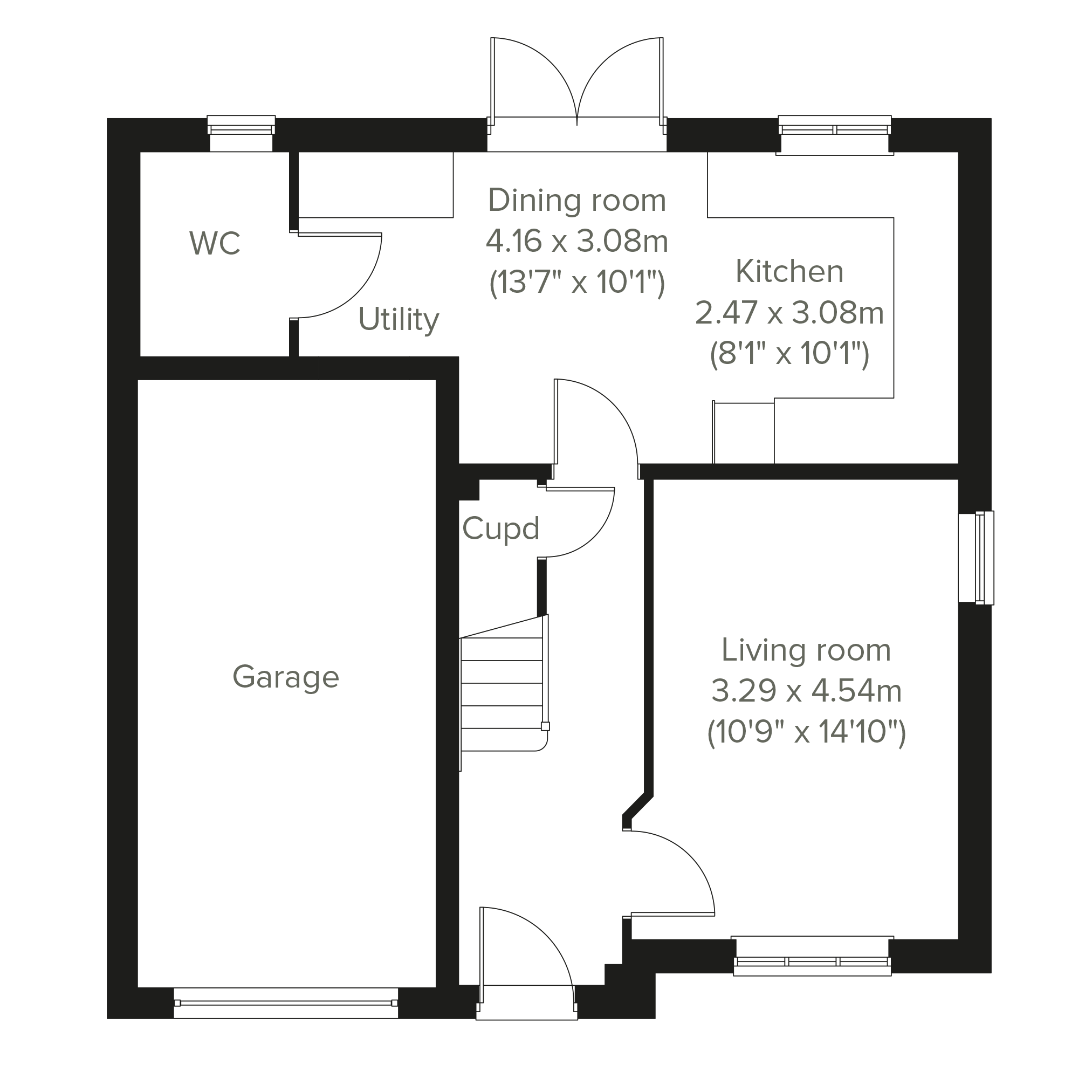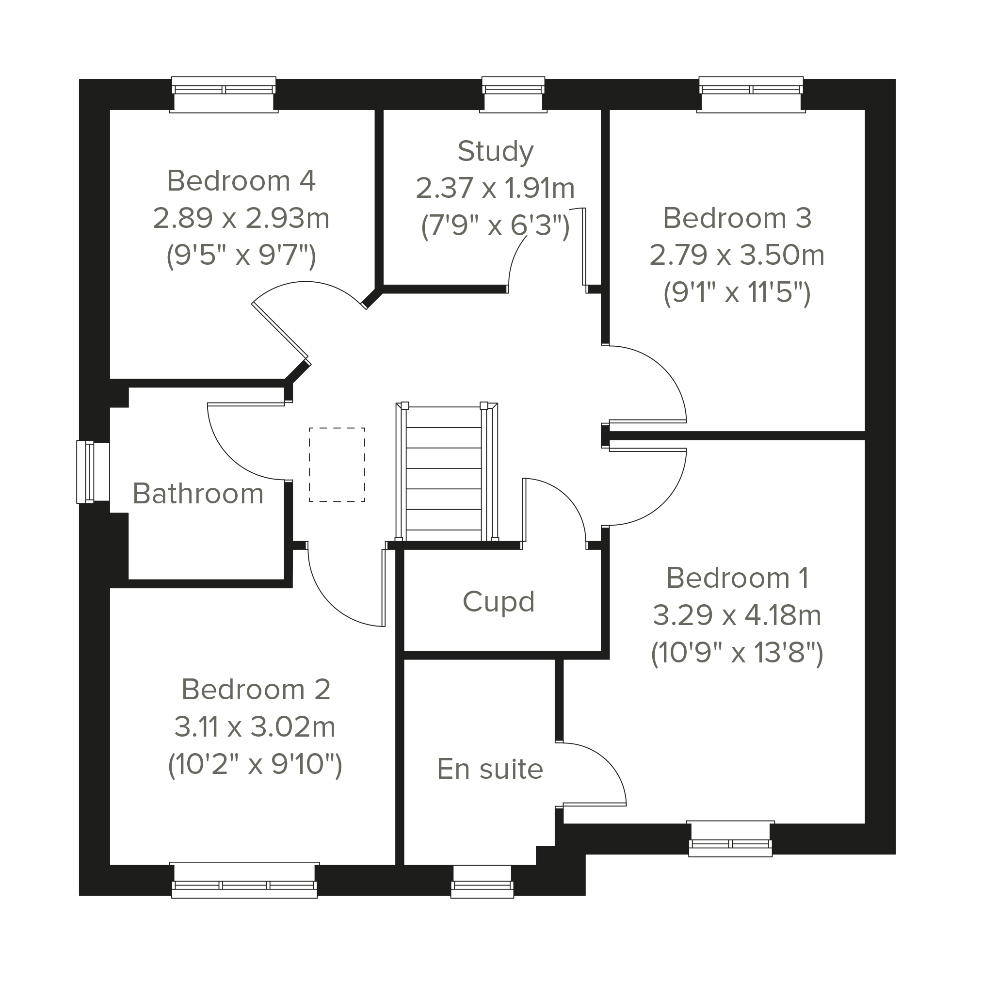 The Marston is a four-bedroom detached home offering open-plan living. The light and airy kitchen/dining room enjoys an open aspect through French doors to the rear garden. There`s a bright front-aspect living room, a downstairs WC, a storage cupboard and an adjoining integral garage. Upstairs, there are four good-sized bedrooms with spacious bedroom one benefiting from an en-suite, plus a study and a modern fitted family bathroom.