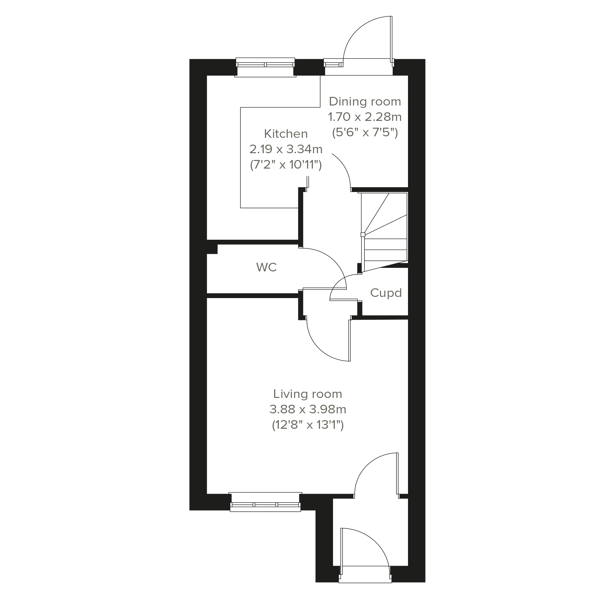 - Council tax band: Not made available by local authority until post-occupation