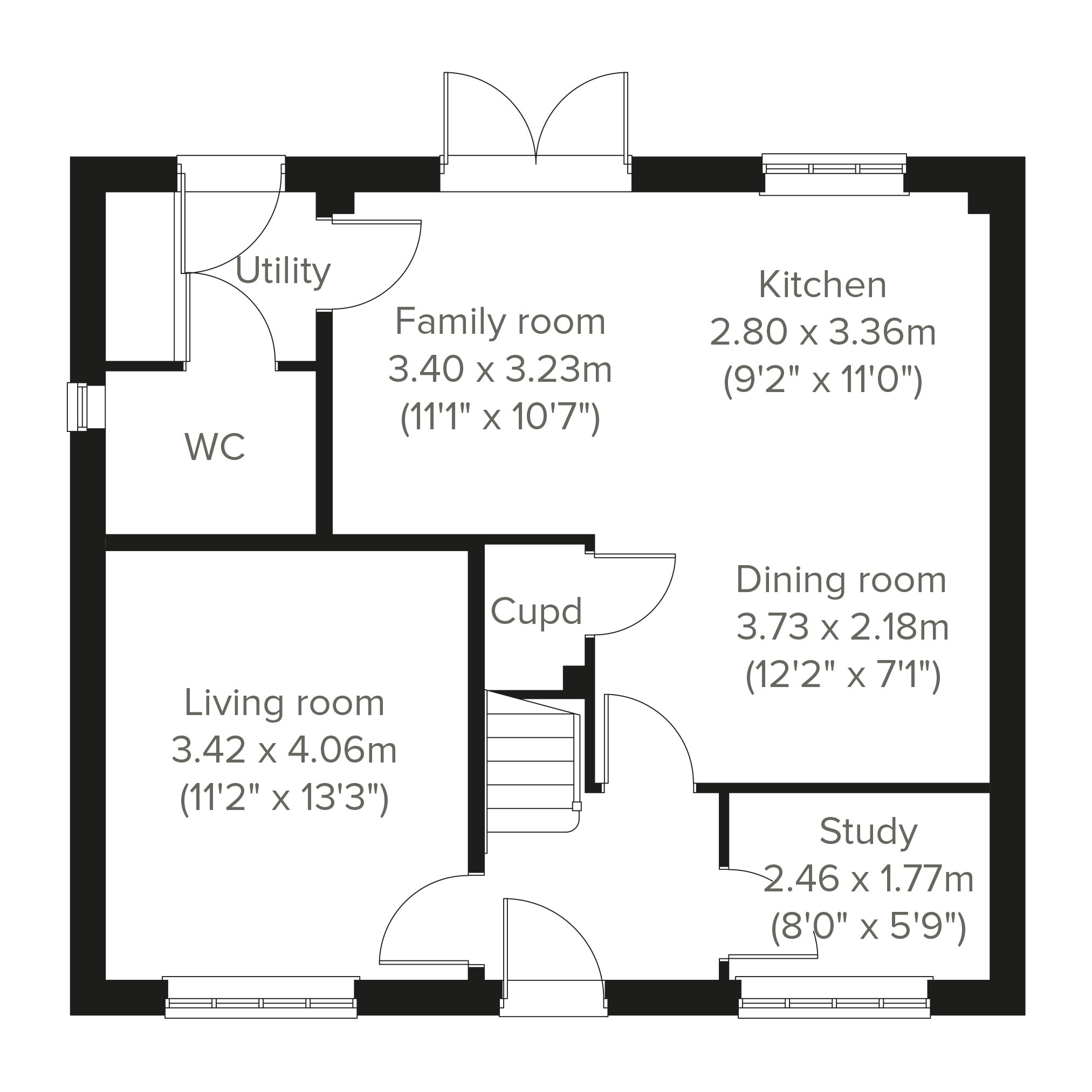 The Brightstone is a detached family home that will catch your eye if you are looking for a future-proof, forever home. Its perfect as your family grows, its perfect for friends to come and stay and its perfectly balanced with five bedrooms and four bathrooms. The living space is perfectly balanced too, with an open-plan kitchen/dining/family room and a separate living room and study.