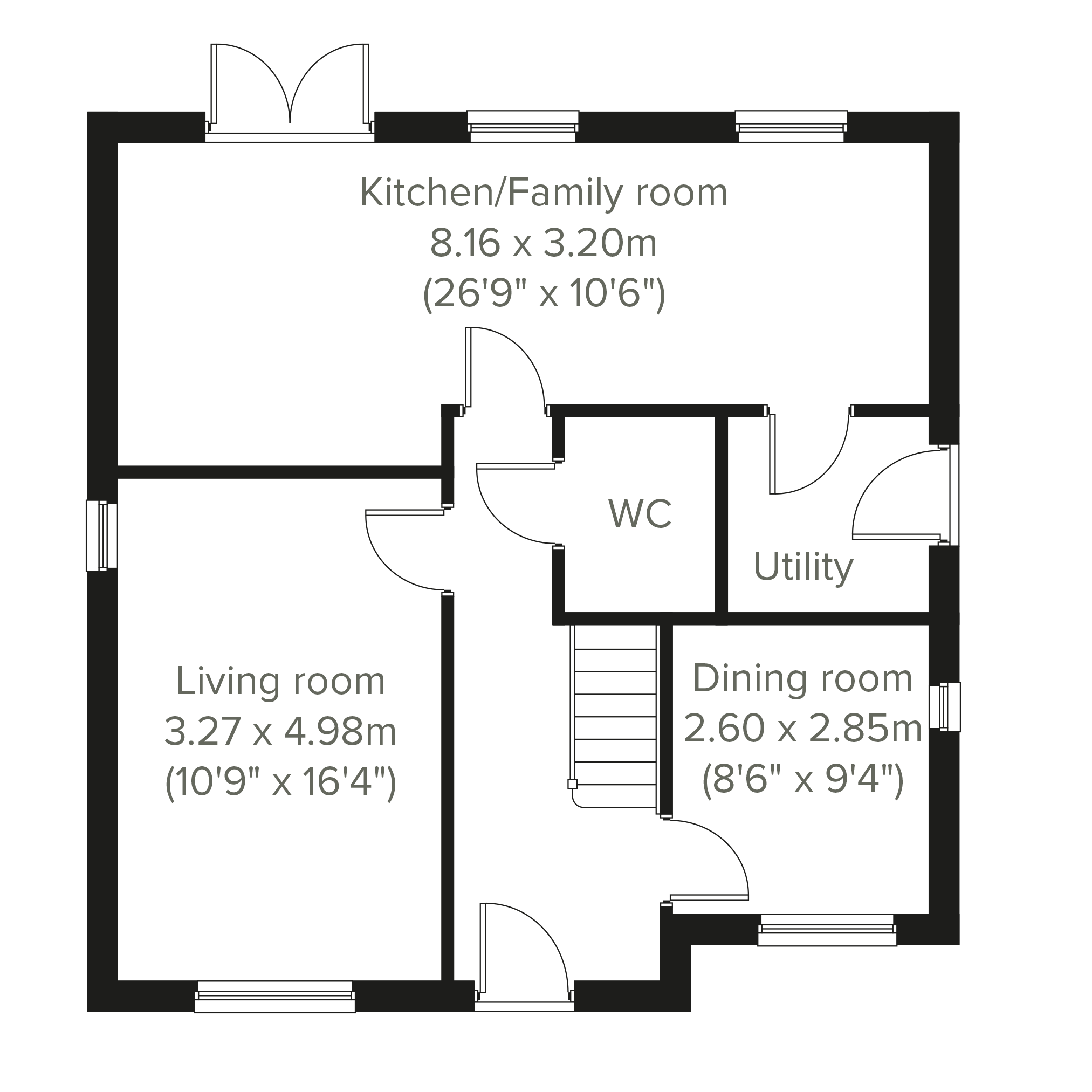 The Braunton features an open-plan kitchen/dining room with access to the garden and a front-aspect living room, downstairs WC and a useful storage cupboard.