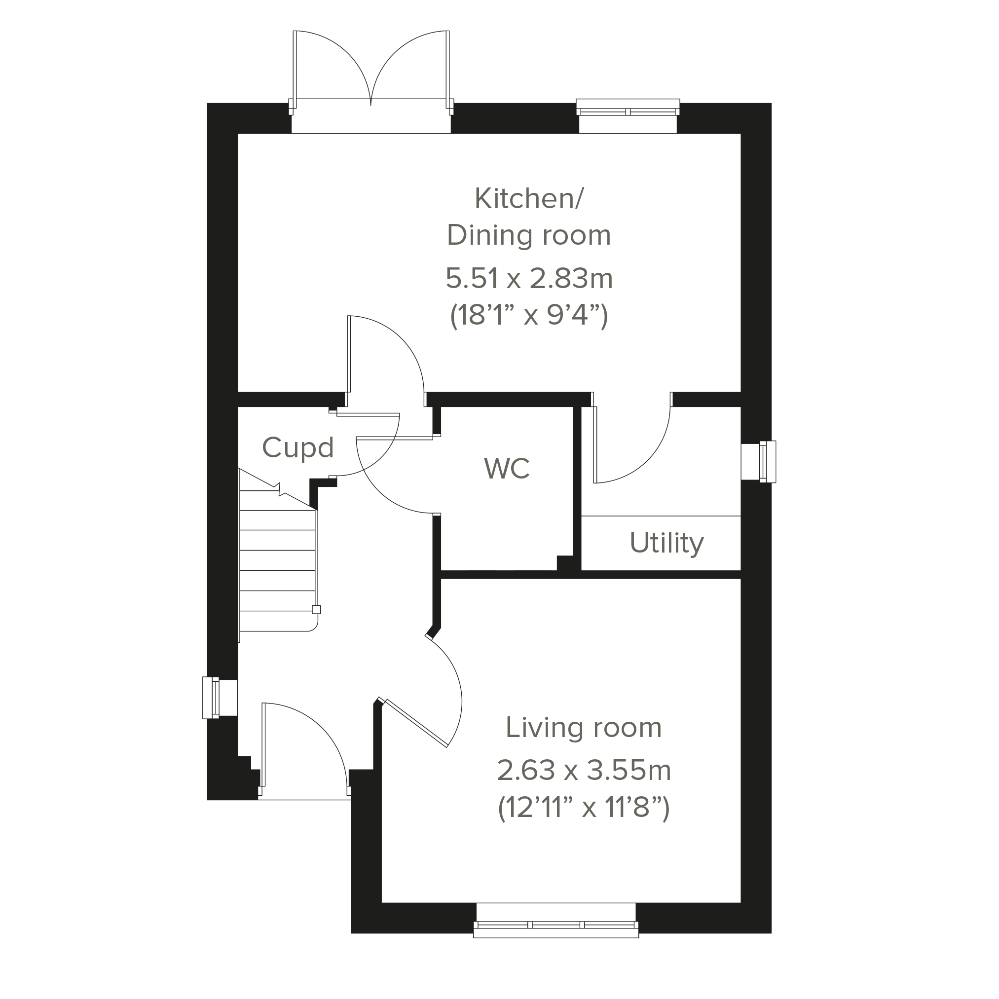 The Whiteleaf is a four-bedroom family home. The kitchen/breakfast room enjoys an open aspect through French doors. There is a living room, a dining room, a WC and utility.