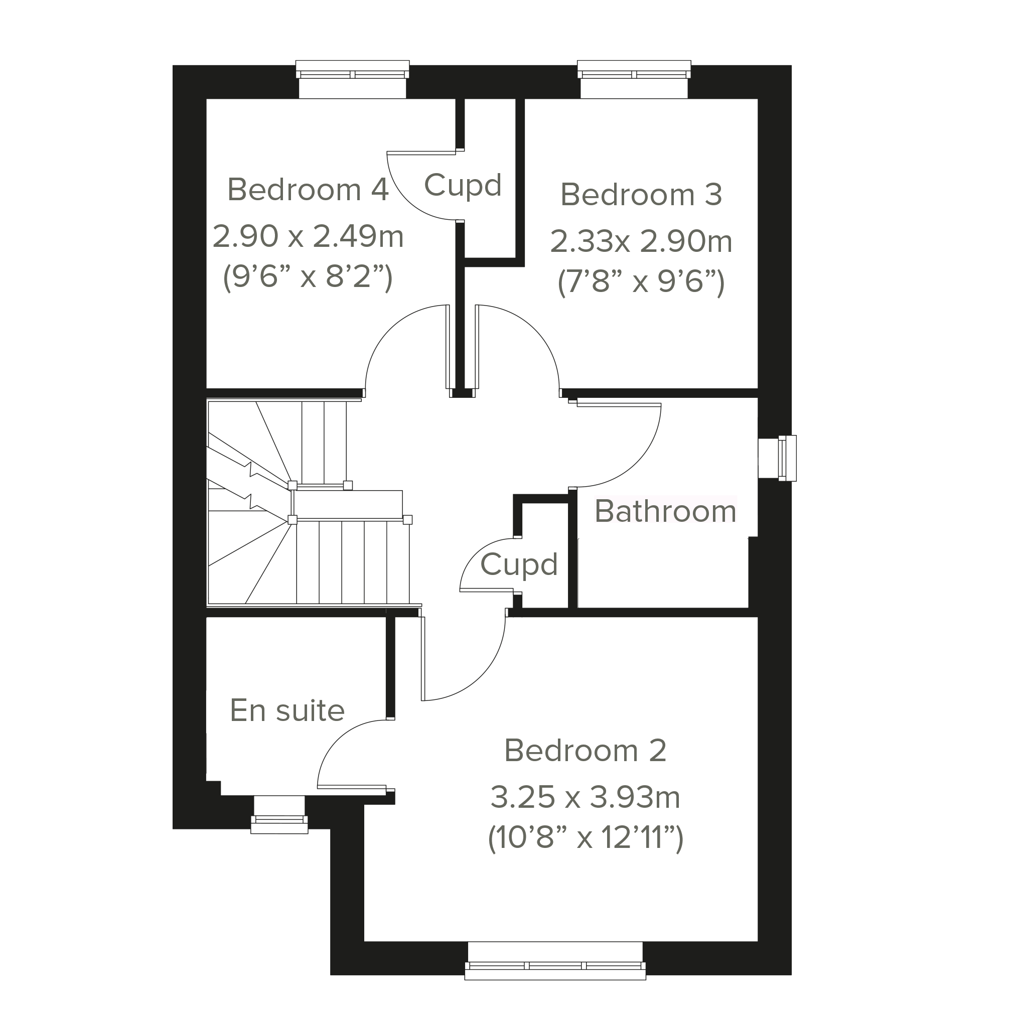 Sometimes you dont just need more space, but more private space to call your own. The Greenwood achieves that for you with two lovely ensuite bedrooms - one of them has the whole of the second floor to itself to choose from. This is a great layout for a growing family, with plenty of space for family time on the ground floor.