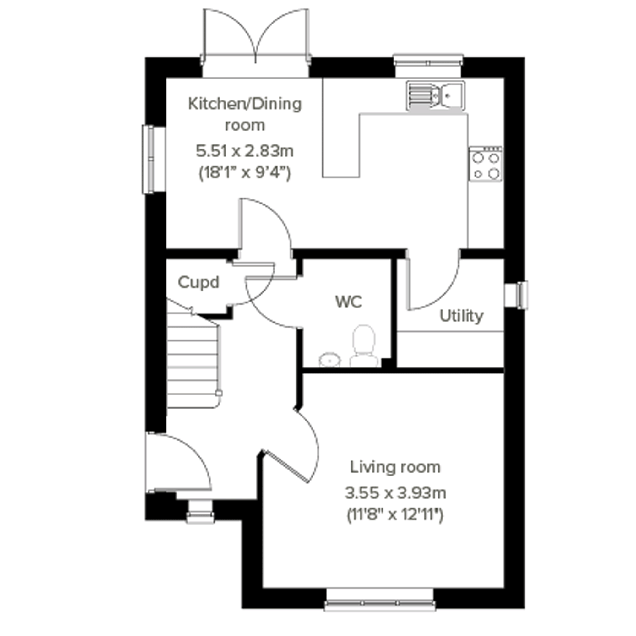 The Grasmere is a three-bedroom family home thats ideal for modern living. The open-plan kitchen/dining room has French doors leading into the garden. Bedroom one has an en suite.