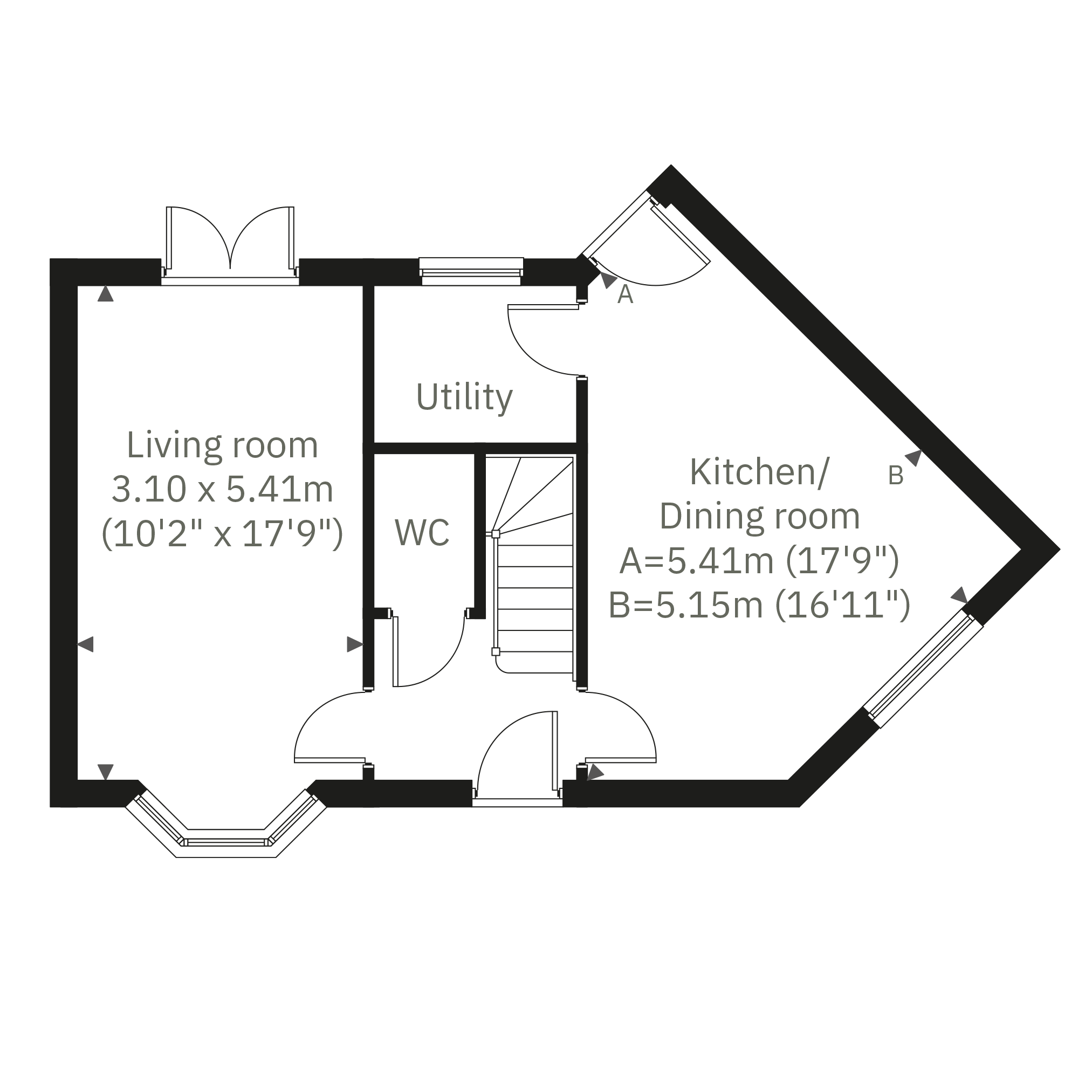 The Greenwood is a four-bedroom, three-bathroom home. The ground floor includes a kitchen/dining room, living room, utility, WC and storage cupboard.