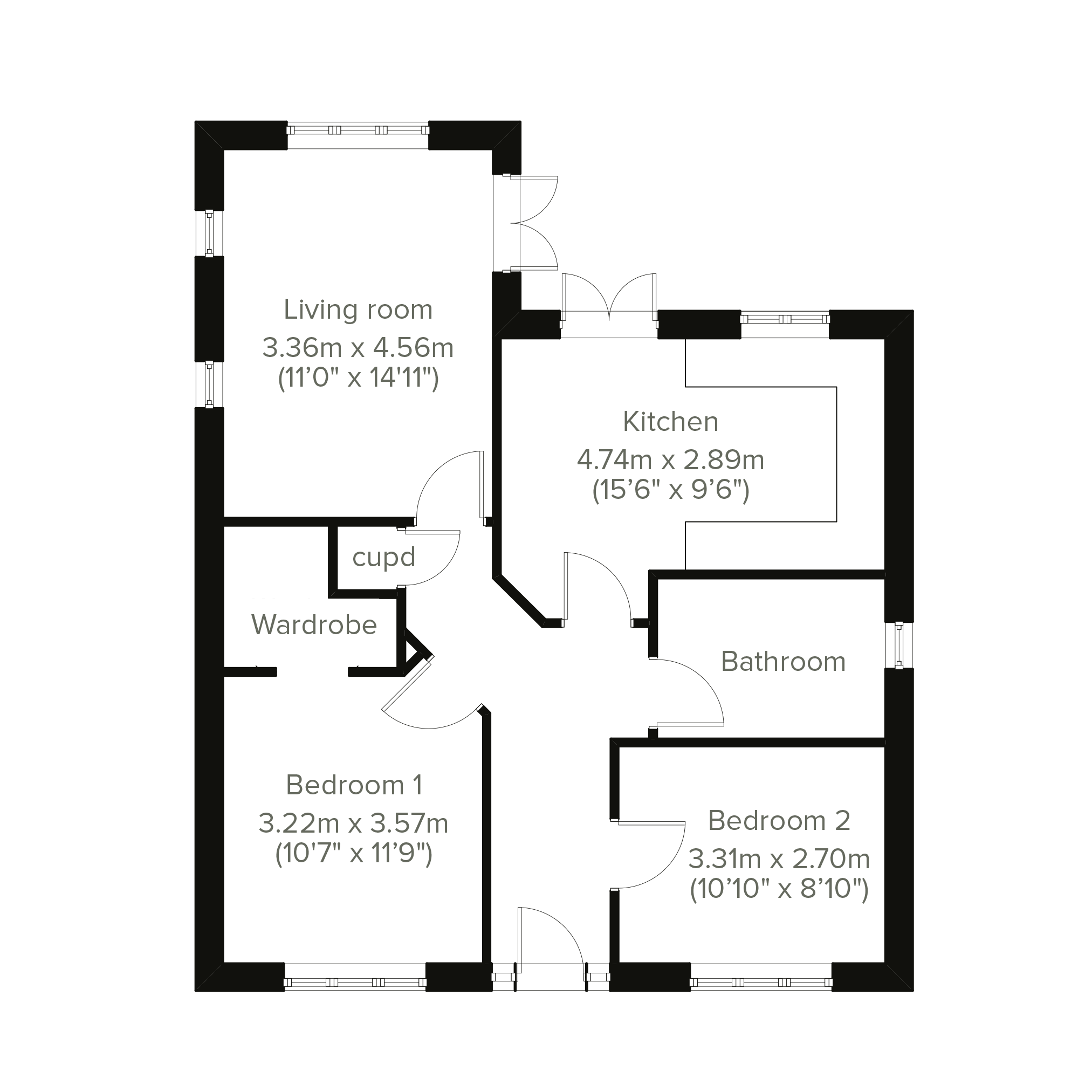 The Bunting is a two-bedroom detached home perfect for modern living. It consists of a separate stylish kitchen and light-filled living room, both with French doors to the garden; a spacious bathroom, two good-sized bedrooms and a wardrobe to bedroom one.