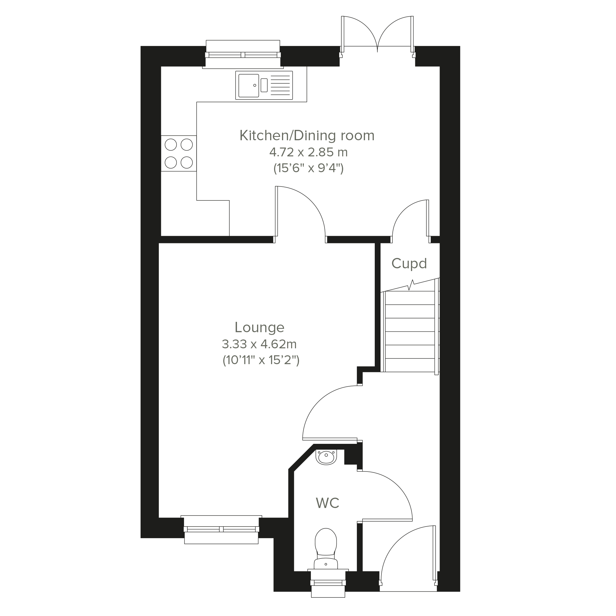 The Portsoy is a stylish and practical two-bedroom home, designed with modern living in mind. A convenient WC and under-stairs storage cupboard adds to the thoughtful layout.