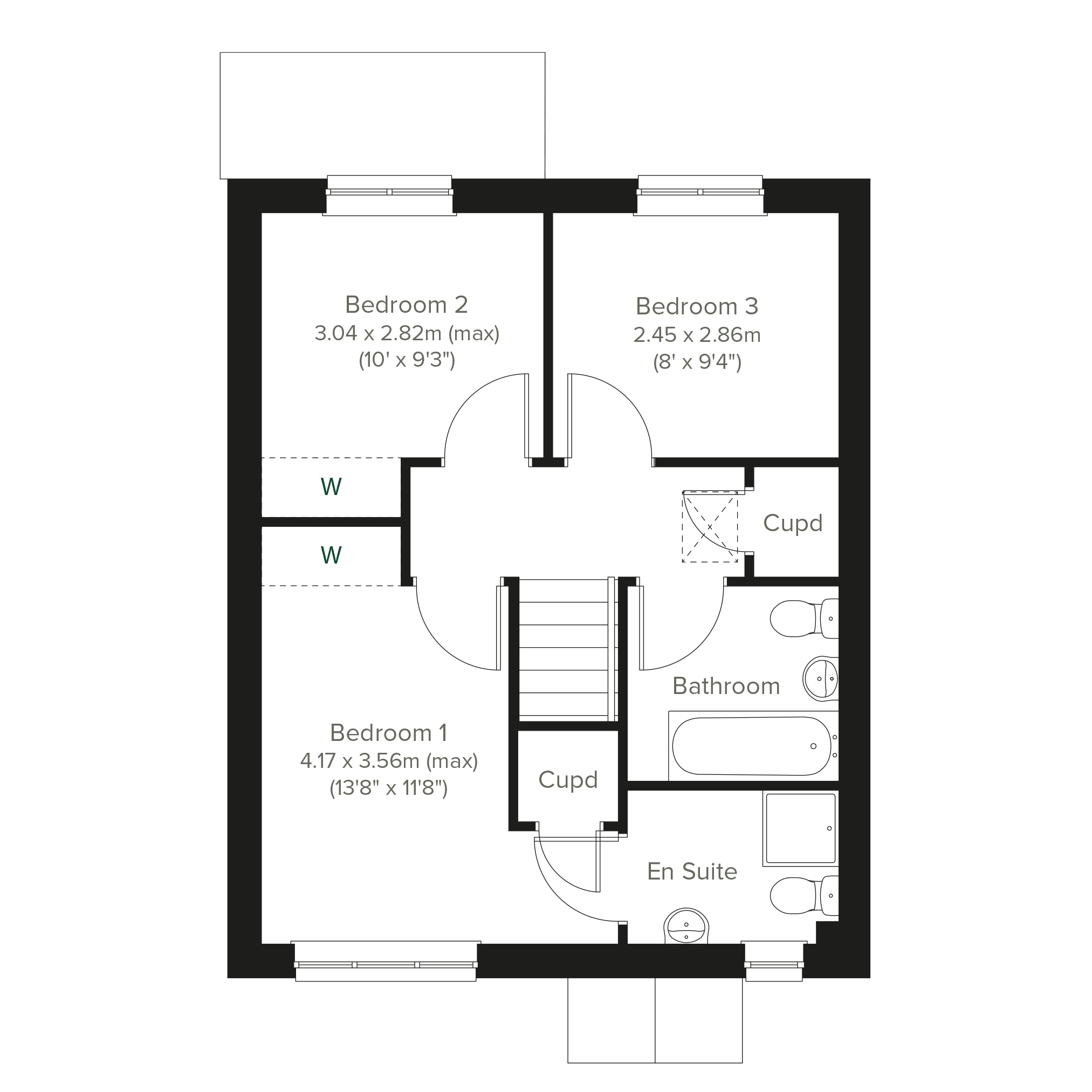 The popular Newton is a three-bedroom family home with spacious living room and separate kitchen with a door leading into the garden. Theres also a downstairs WC, handy storage cupboard and garage. The first floor benefits from three good sized bedrooms, a family bathroom, storage cupboard and bedroom one with en suite.