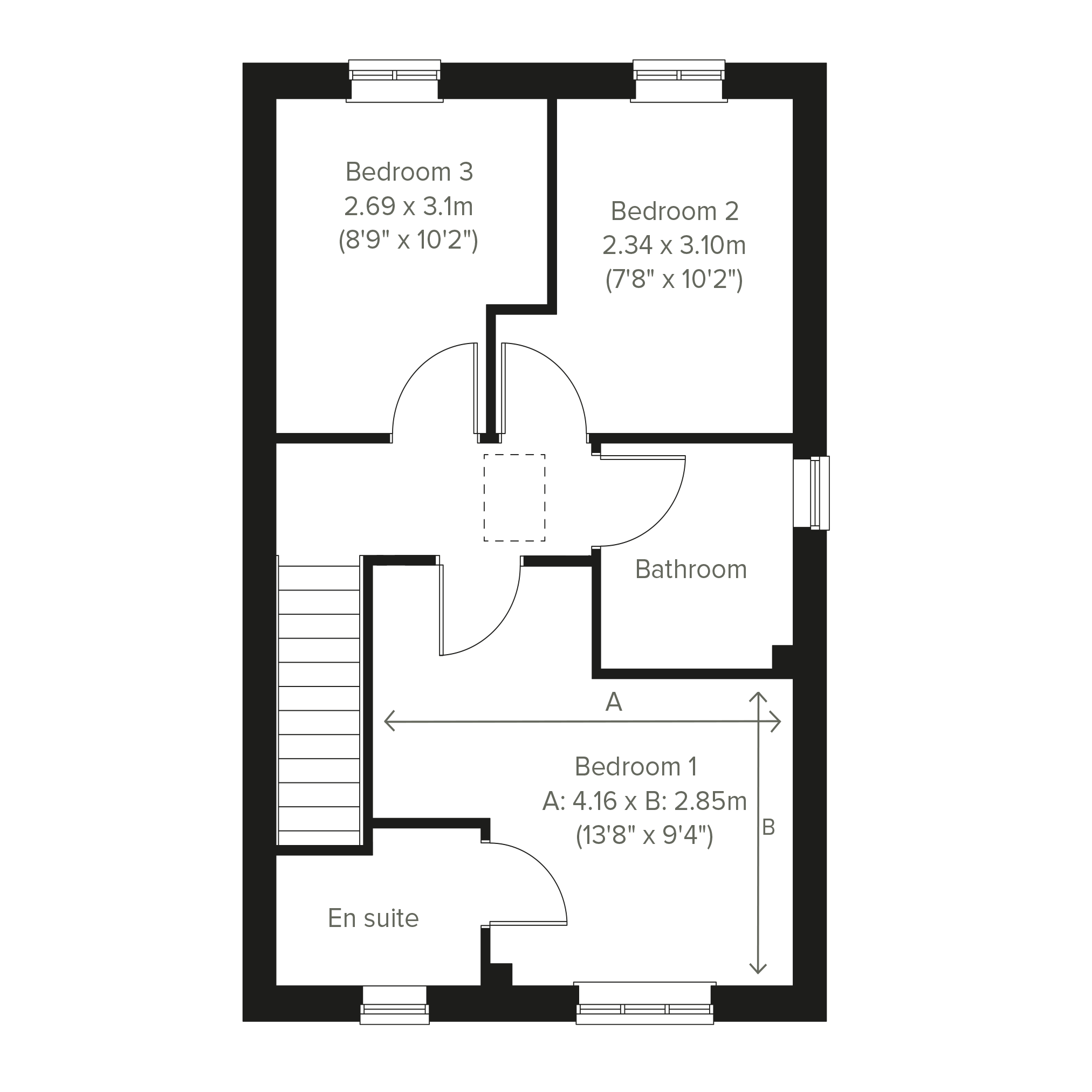 An attractive three-storey home, the Saunton has an open-plan kitchen/dining room, a living room and three bedrooms. The top floor bedroom has an en suite.