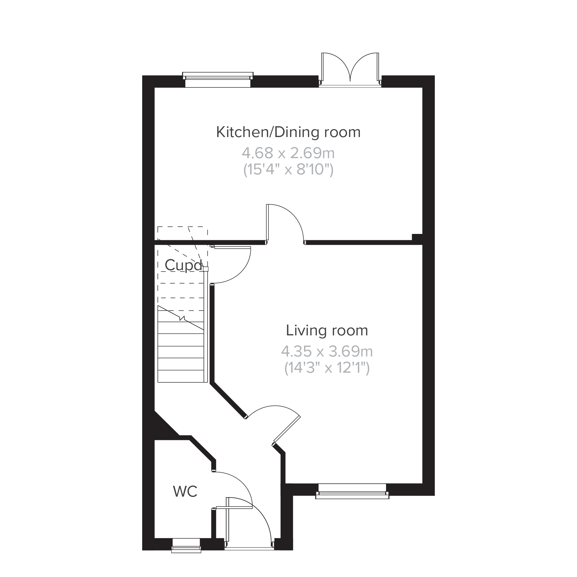 - Council tax band: Not made available by local authority until post-occupation