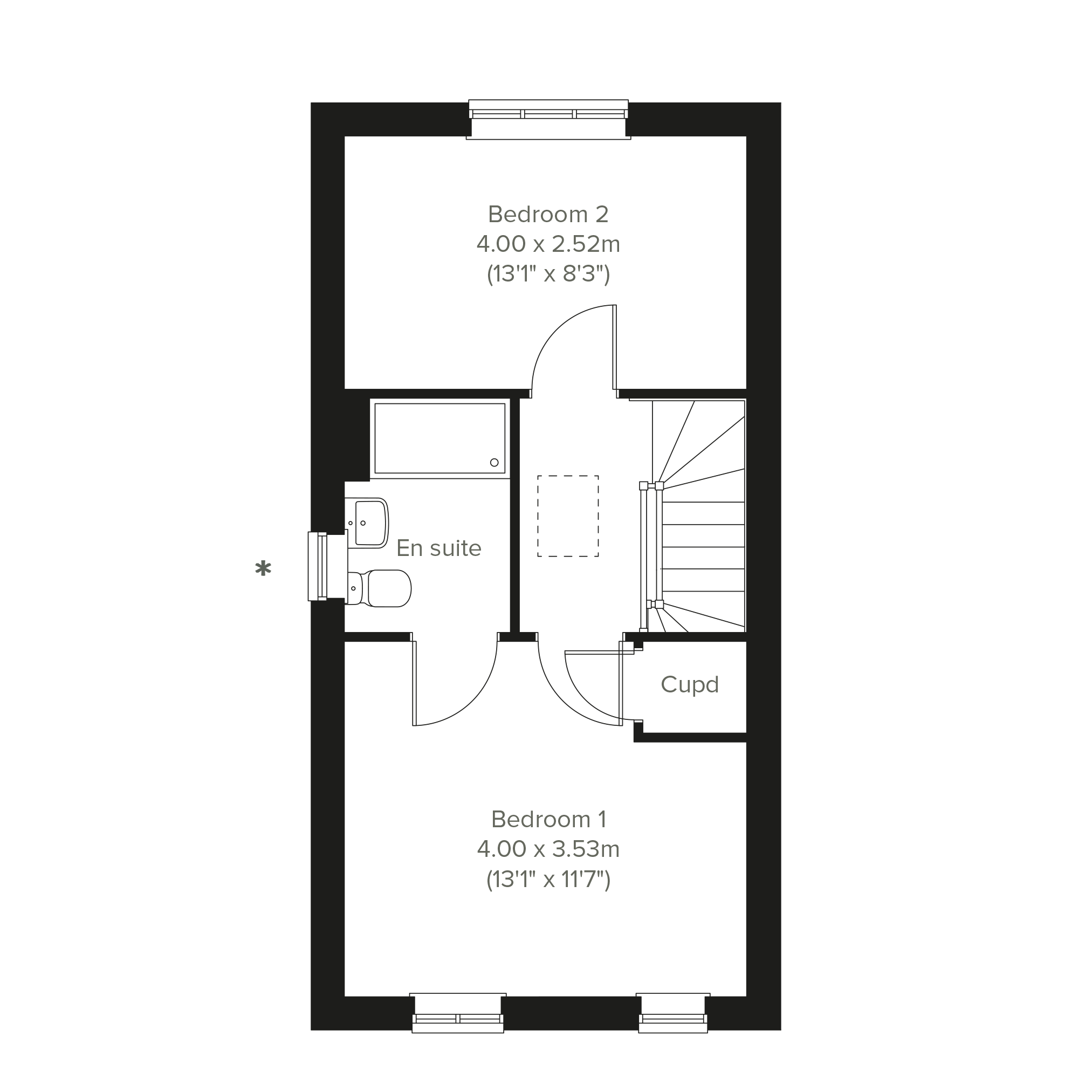 The Ashdown is a superb three-bedroom home with a good-sized kitchen/dining room with garden access - perfect for family life and entertaining. Its practical too, with a study/snug on the ground floor, a downstairs WC and four storage cupboards. Both bedroom three and the living room (with its attractive Juliet balcony) are situated on the first floor. On the upper floor there are two further bedrooms - bedroom one with an en suite.
