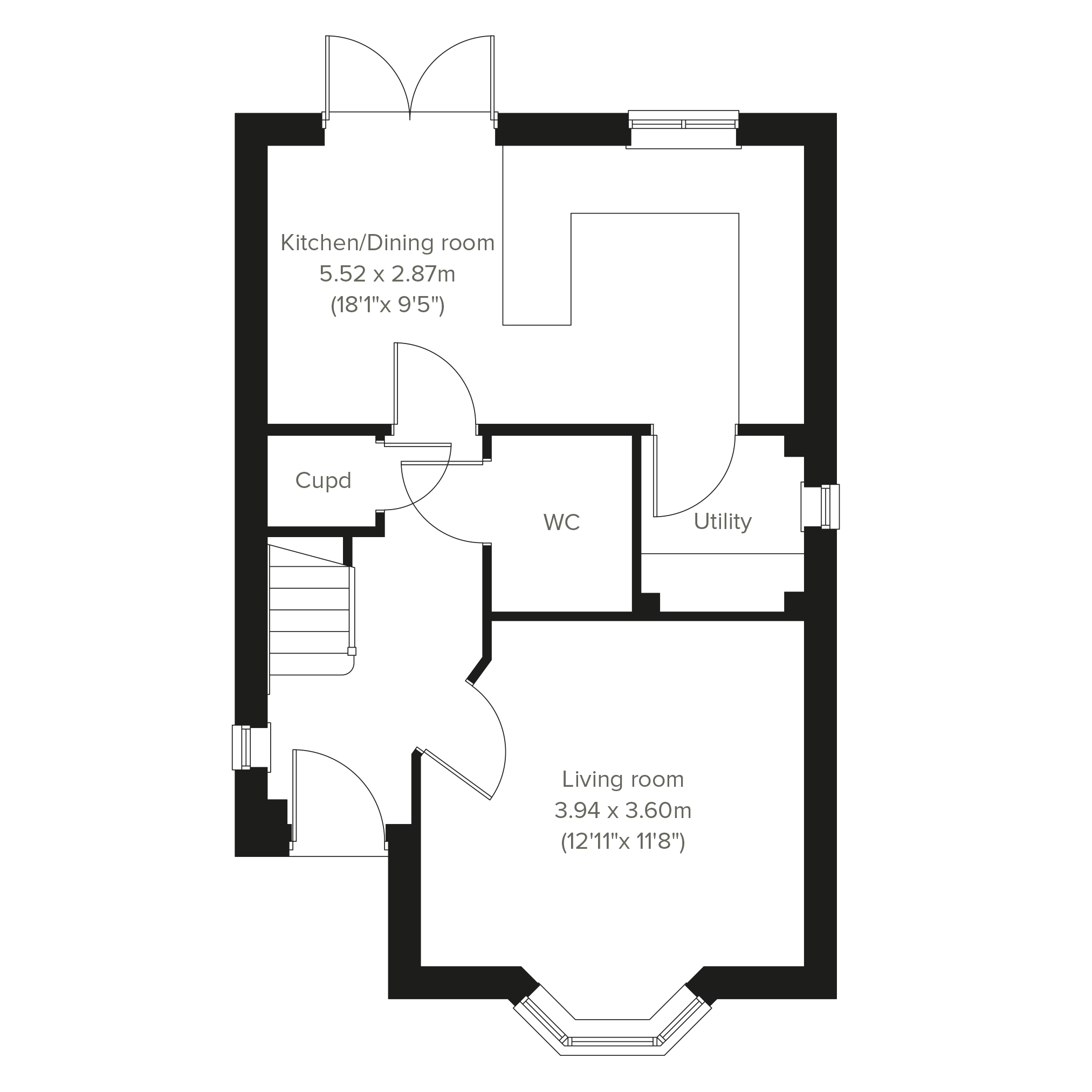 The Redwood has an open plan kitchen/dining room with French doors and a front-aspect living room. The utility and WC complete the ground floor.