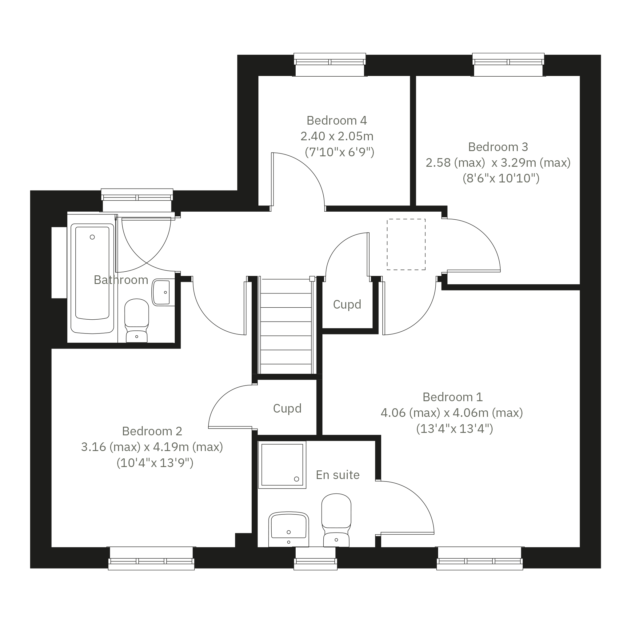 Ideal for family life, the Dorridge is a beautiful four-bedroom detached home. The open plan kitchen/dining/breakfast room is spacious with French doors leading onto the garden as well as a family room - perfect for gatherings with friends and family. The single garage, downstairs WC, en suite to bedroom one and three handy storage cupboards means its practical as well as stylish.