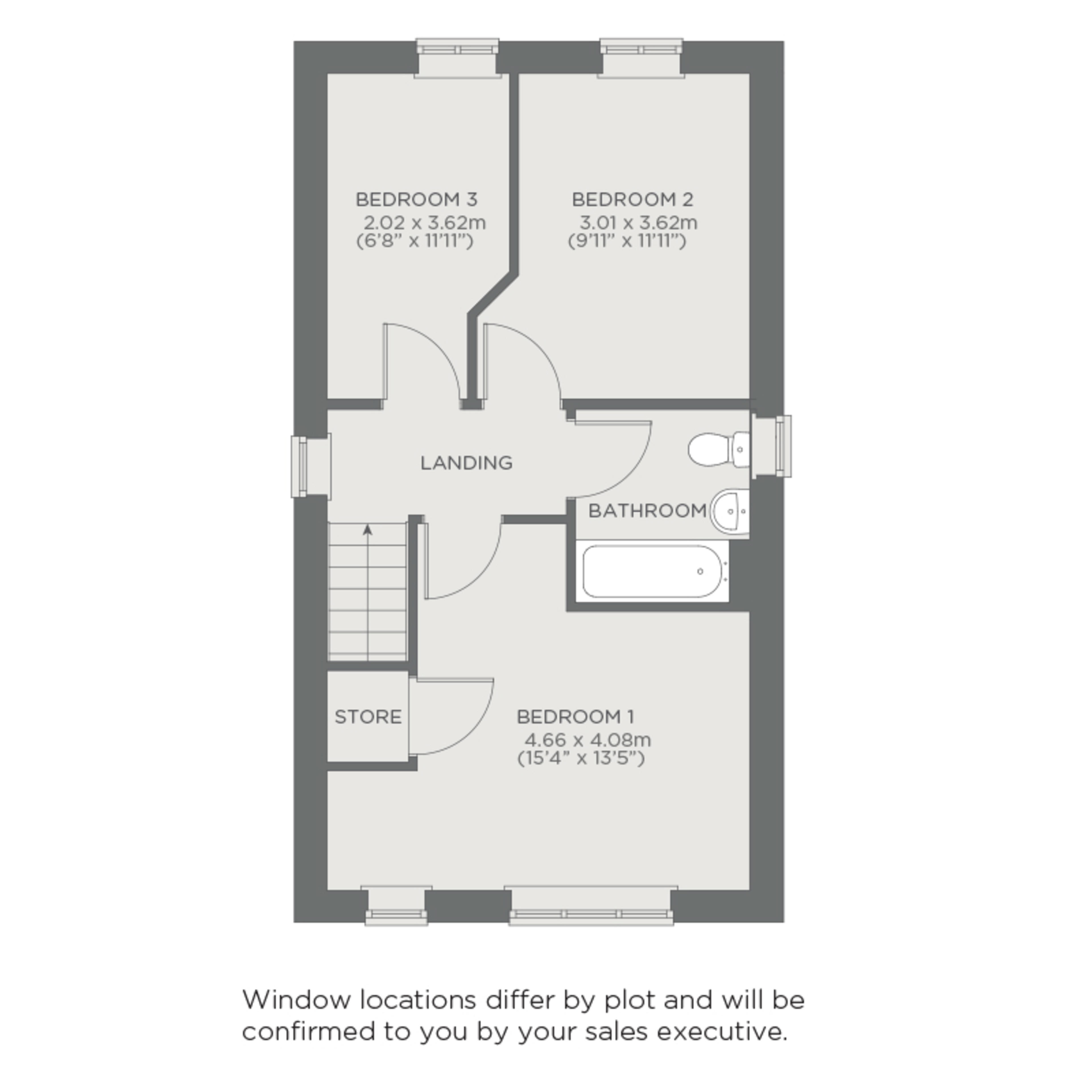 Upstairs the generous main bedroom comes with space for wardrobes and more. Bedroom 2 is a great size for guests or kids, and the third bedroom makes the perfect nursery or home office. A modern family bathroom completes the floor, plus extra storage on the landing for all those where do we put this? moments.
