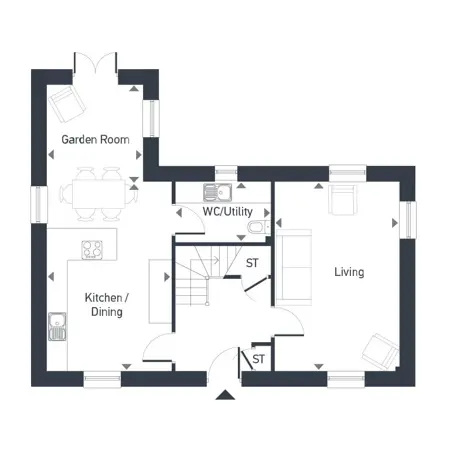 The Ferguson is our charming three-bedroom home perfectly designed for young professionals, growing families and those looking to downsize. There is a separate utility / wc and storage on this floor.