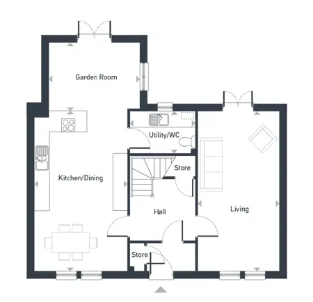 The Hamilton is our stunning four-bedroom, modern country home in the vibrant development of Longniddry. This home features an inviting entrance hall leading to a spacious, dual aspect living area.