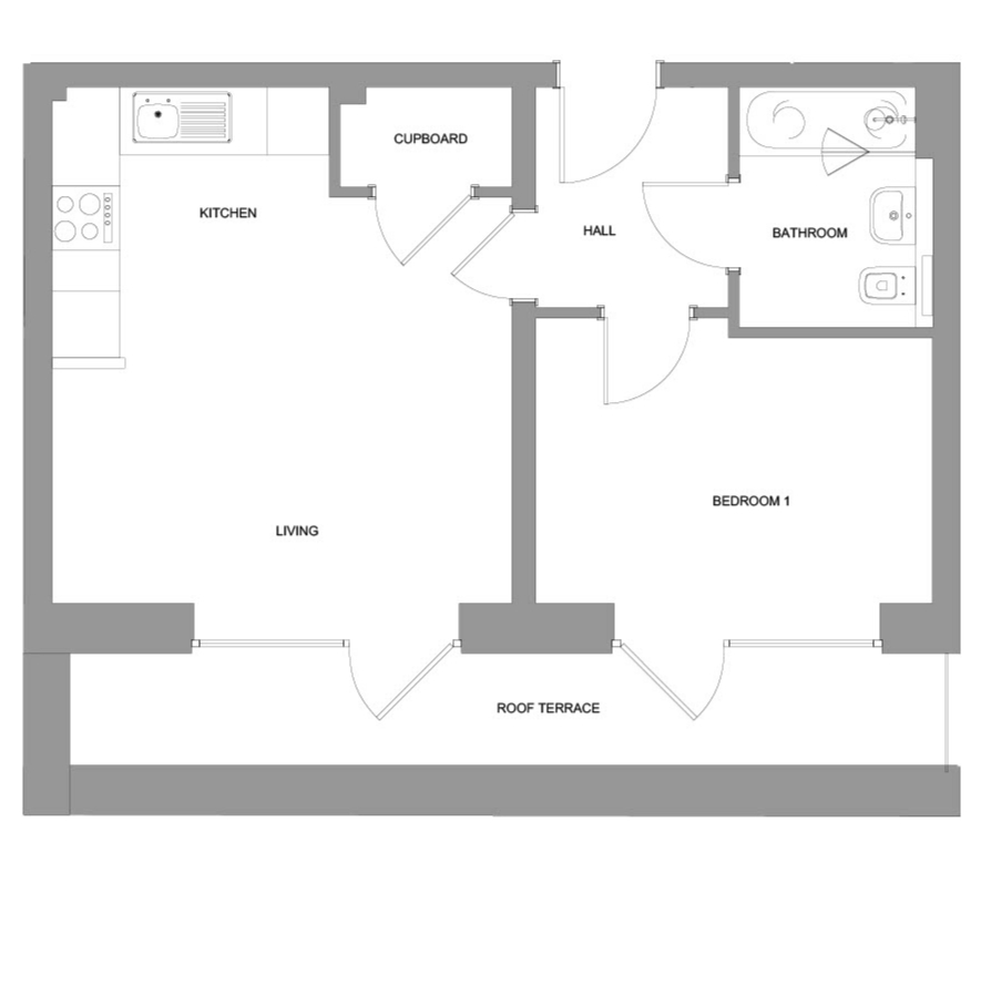 Located on the 5th floor of Gateway House, The Downham is a lovely 1-bedroom apartment with a thoughtful layout and stunning roof terrace access.