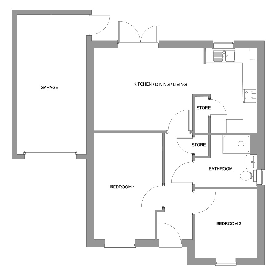 The Mulberry is a charming 2-bedroom link detached bungalow, perfect for anyone searching for their forever home. To the front of The Mulberry, you will find a spacious bedroom to the left, and a second bedroom to the right – both off the hall.