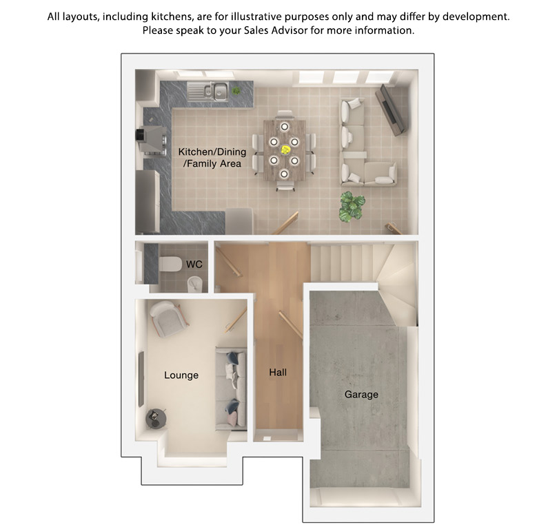 On the ground floor, the hallway leads into the bright lounge, with square bay window, at the front of the property. Adjacent to this is a personnel door to the integral garage, providing easy access. To the rear is an extensive kitchen/dining/family area which incorporates bi-fold doors that lead to the enclosed garden. This space is the star of the property, and is perfect for wining, dining and socialising with your loved ones. Finally, there is a useful WC to complete this floor.