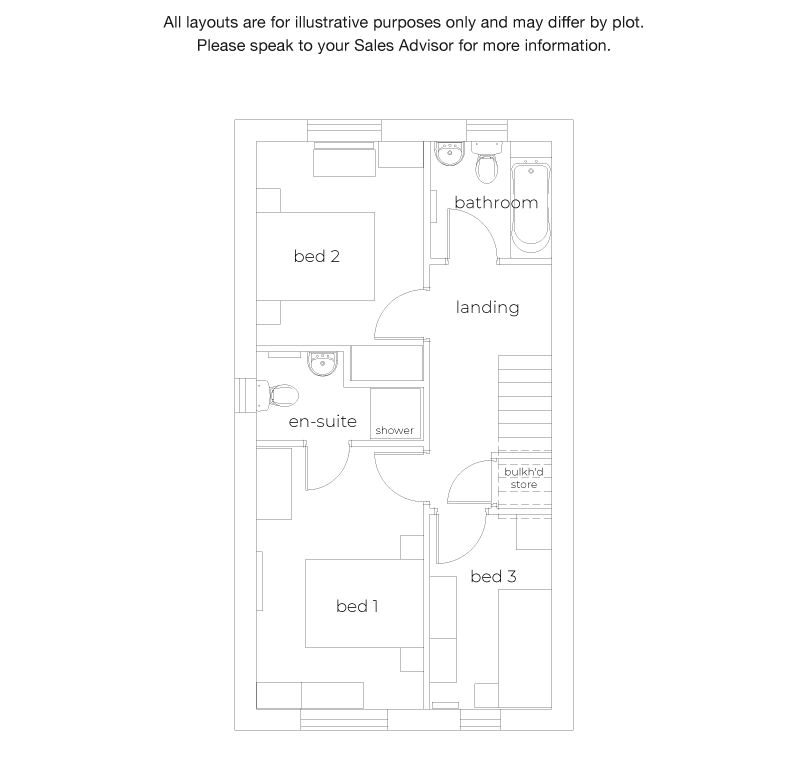 The family bathroom is designed for busy mornings and evening soaks alike. A built-in landing cupboard offers additional tucked-away storage.