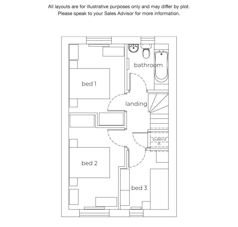 Upstairs, three bedrooms are arranged around a central landing with a handy storage area to keep clutter at bay. There are two similarly sized double bedrooms, while the third makes a versatile single room, nursery or home office. A well-fitted family bathroom is ideally positioned to serve all bedrooms and ensures comfort and convenience for busy households.