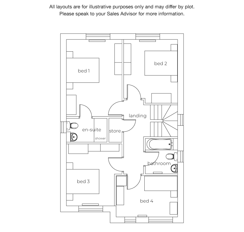 Upstairs, four well-proportioned bedrooms are arranged around a central landing. The impressive master room boasts its very own rainfall shower en suite, while the remaining bedrooms are served by a well-appointed family bathroom. A handy landing storage cupboard helps keep your home neat and tidy. This versatile layout suits growing families, visiting guests, or flexible home working spaces.