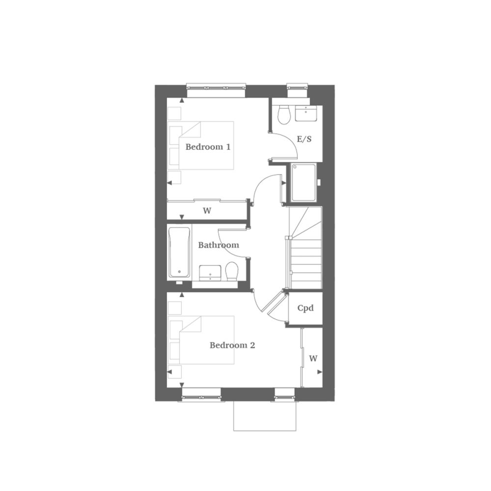 The Blenheim is a stylish two-storey mid-terrace house featuring a spacious, full-width open-plan kitchen, dining, and living area that opens onto a private garden, ideal for relaxing or entertaining. The high-spec kitchen includes sleek cabinetry, Siemens appliances and generous worktop space. The downstairs of this home also offers a welcoming entrance hall, cloakroom, and storage cupboard. Upstairs, the principal bedroom boasts an en-suite and space for fitted wardrobes, while a second double bedroom and a modern family bathroom complete the floor. Additional benefits include two parking spaces and an EV charger. Flooring inclusion negotiable. Interior photography of show home. Exterior photography of comparable home.