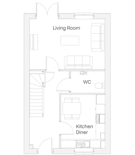 Our spacious three-bedroom townhouse at Cygnet View features a stylish openplan kitchen and dining area, along with a spacious family lounge complete with french doors opening into the rear garden. A convenient WC is also located on the ground floor.