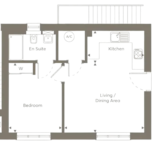 No.64, Mercia is a well-designed one-bedroom ground-floor maisonette at Ellenbrook showcasing a spacious layout.