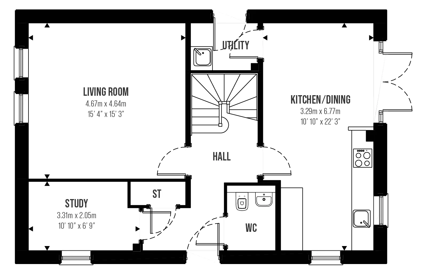 The heart of the home features an open plan kitchen and dining area, complemented by a separate living room, providing generous space for everyday living. For those working from home, a private study at the front of the house offers a dedicated workspace. Upstairs, youll find four well-proportioned bedrooms, including a primary bedroom with a stylish en suite, as well as a family bathroom.