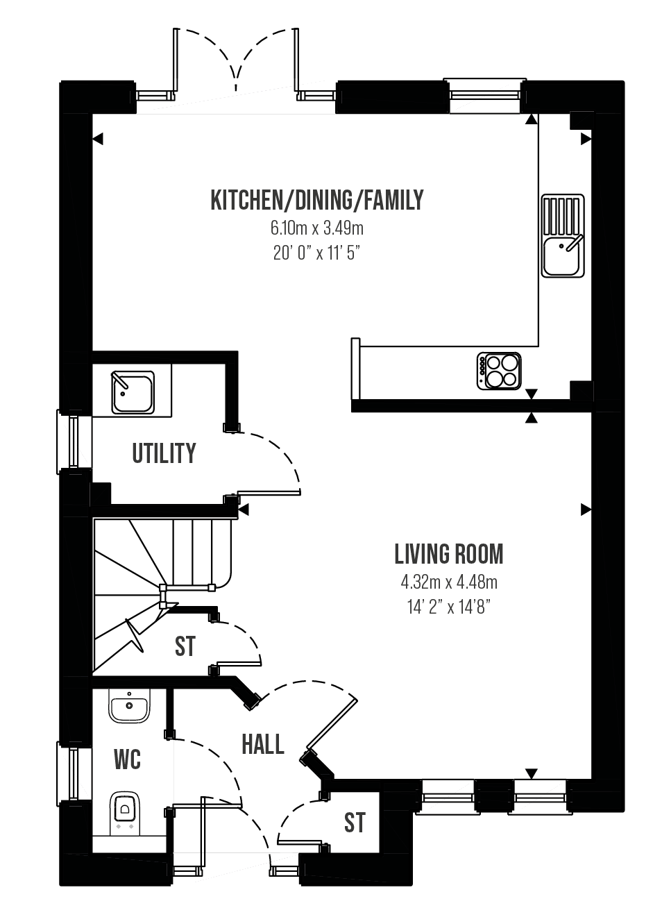 This property offers an open-plan, functional, spacious layout, ideal for modern living. The kitchen and dining area have glazed French doors leading to the rear garden, allowing for easy access and plenty of natural light.