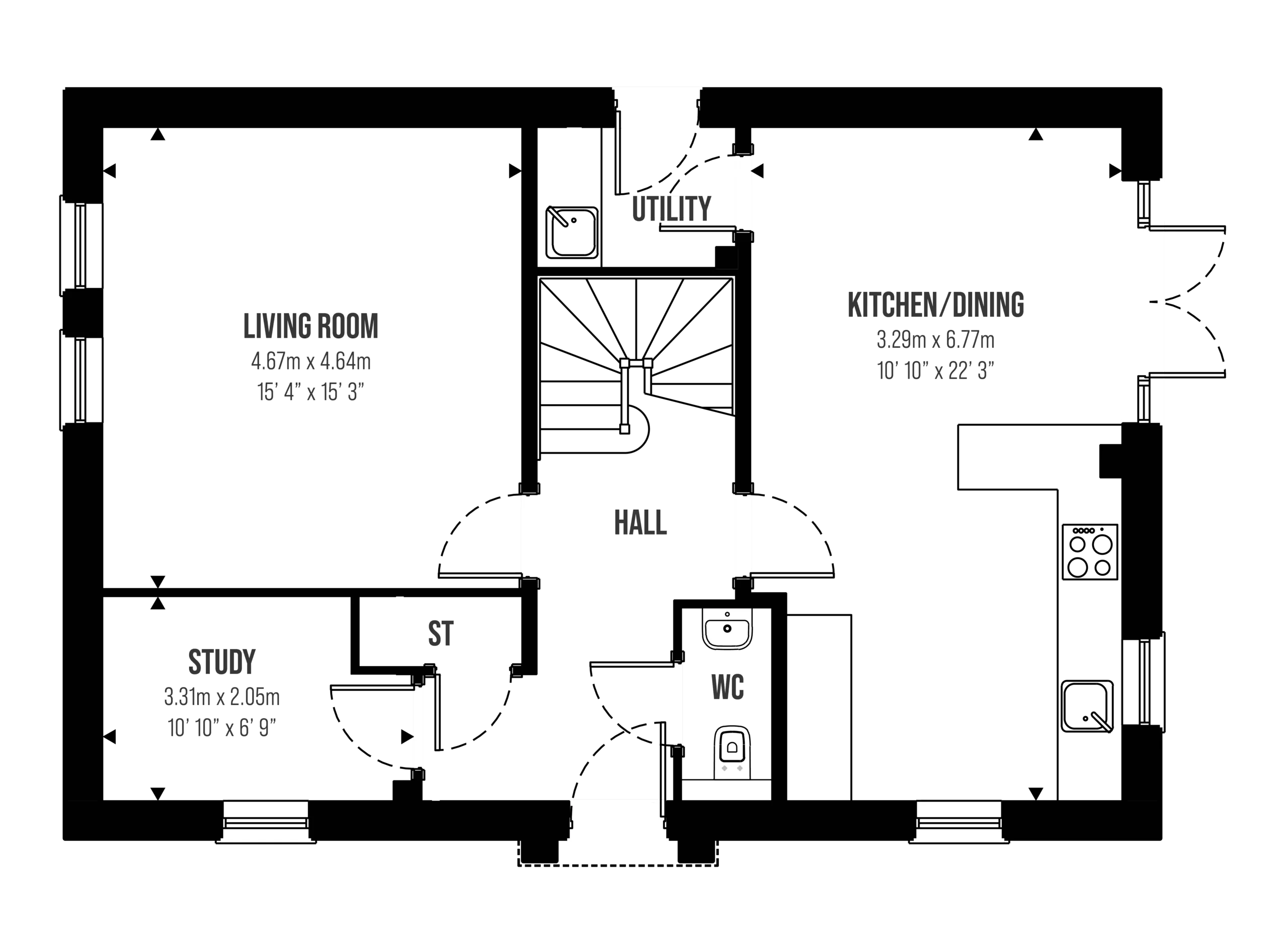 The heart of the home features an open plan kitchen and dining area, complemented by a separate living room, providing generous space for everyday living. For those working from home, a private study at the front of the house offers a dedicated workspace. Upstairs, youll find four well-proportioned bedrooms, including a primary bedroom with a stylish en suite, as well as a family bathroom.
