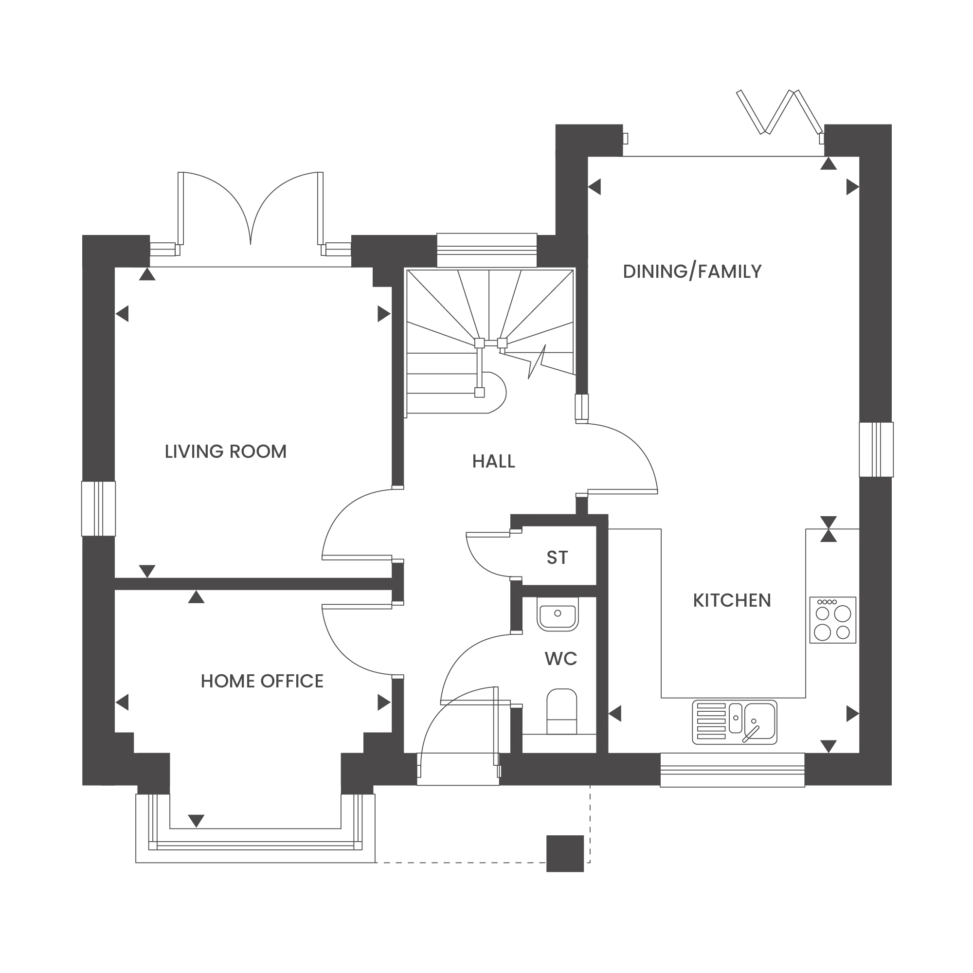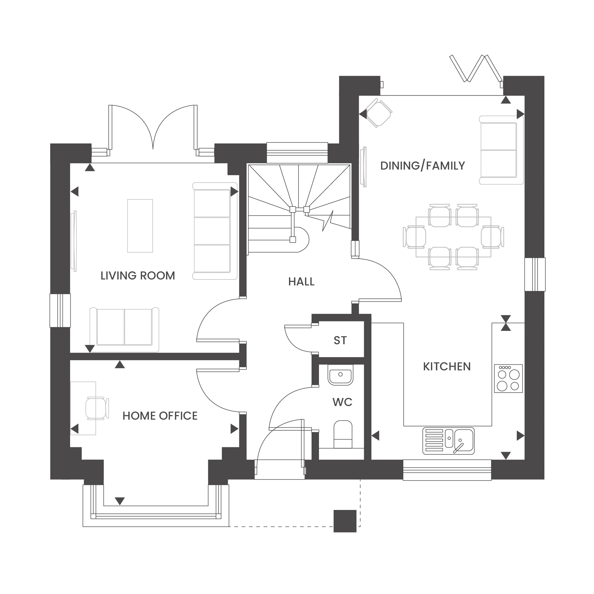 With its fresh rendered exterior and stylish black window frames, Millstone House offers an impressive contemporary look. The statement porch adds extra character and leaves a striking first impression.