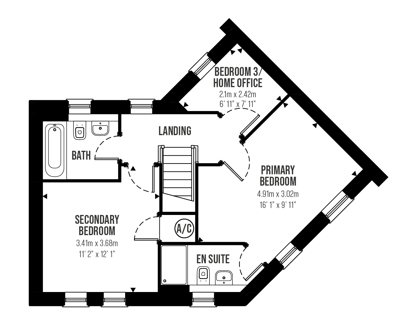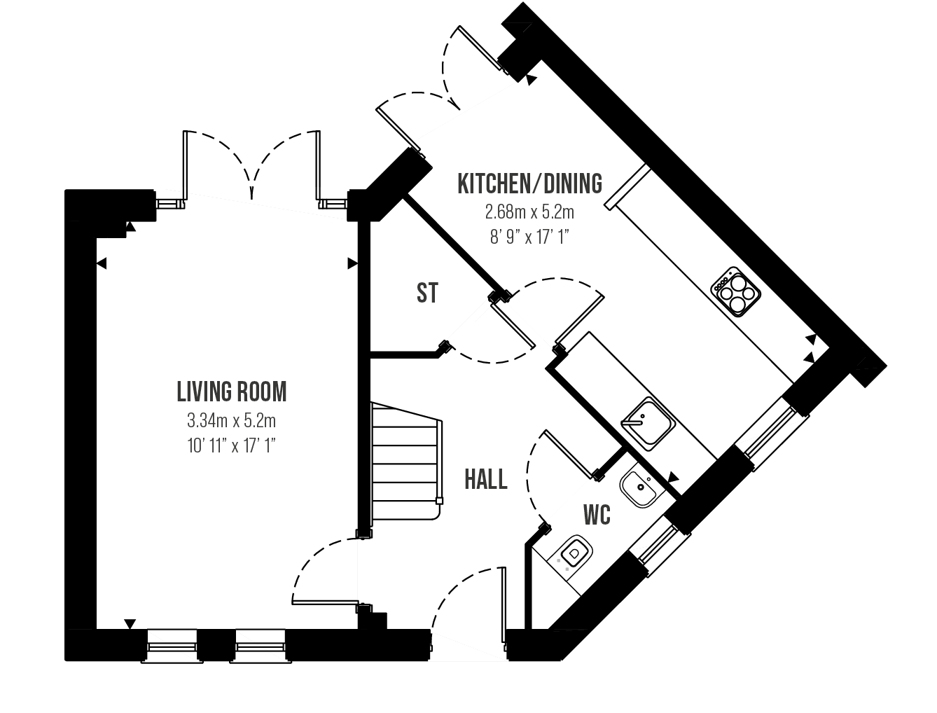 No.14 at Maybank, the Leverton, is the only home of this house type in the collection and is finished in crisp white render to create a striking appearance.