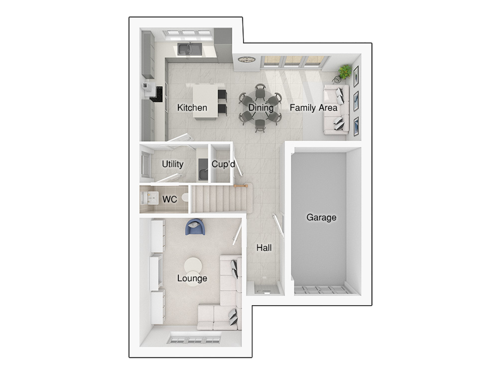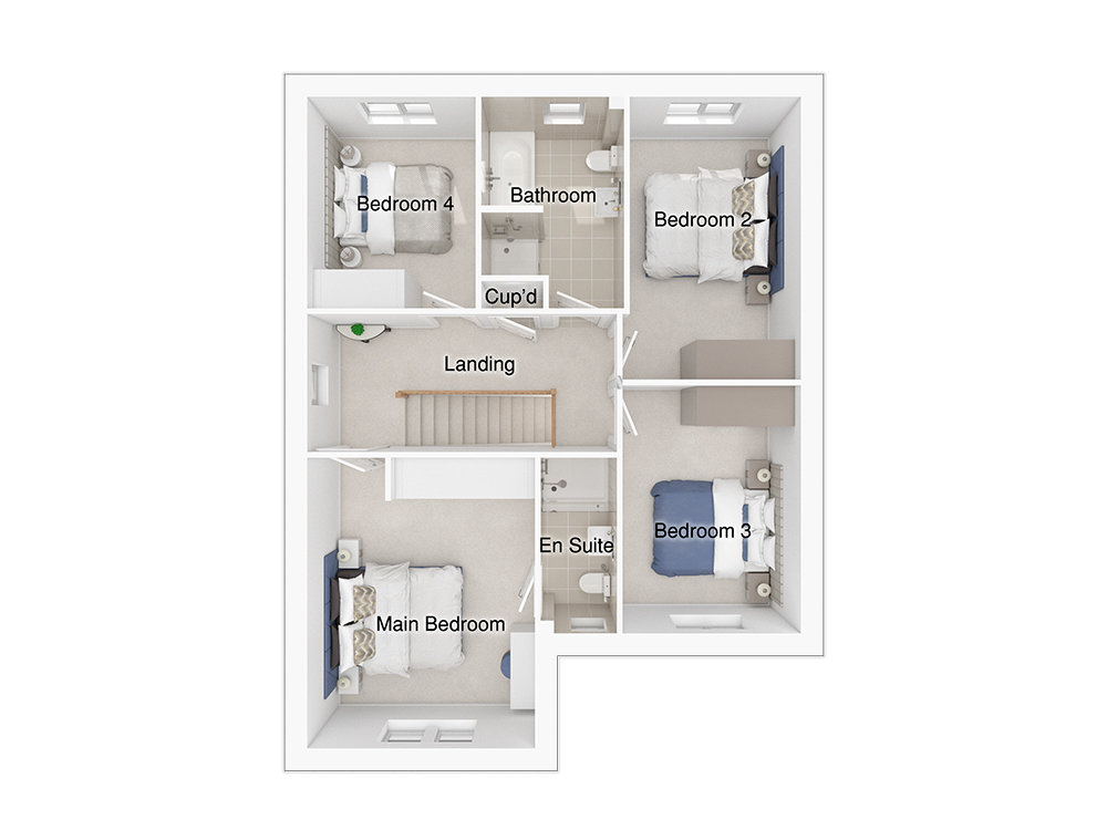 The 4-bedroom Sanderson is thoughtfully designed for modern living, featuring a beautiful open hallway that flows seamlessly into the open plan kitchen/dining/family area. With room for a six-seater dining table and four-seater corner sofa, this versatile space includes a stylish kitchen island and French doors that extend the living area, connecting it to the paved patio and rear garden. The French doors flood the space with natural light, making it perfect for entertaining and everyday living. The generous lounge features a large window, creating an airy atmosphere, with enough space for two three-seater sofas and a large chair. The ground floor of this home also features an integral garage which could be the perfect space for a home gym or used for additional storage.Upstairs, a striking feature staircase and window enhance the space, allowing sunlight to cascade through the area. Three of the bedrooms are double, including the main bedroom which has plenty of room for built-in wardrobes and a convenient en-suite complete with a shower enclosure, sleek white sanitaryware and designer Porcelanosa tiles. An additional spacious single bedroom is the perfect size for a home office or play area. The main bathroom features a stylish double ended bath and a large separate shower enclosure, so theres plenty of space on busy mornings.The Sanderson has enviable external features, with an entrance canopy and other eye-catching features to create kerb appeal. The block paved driveway adds even more character to this home.Tenure: FreeholdEstimated Council Tax Band: TBCEPC Rating: A