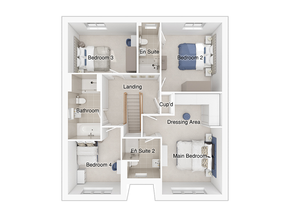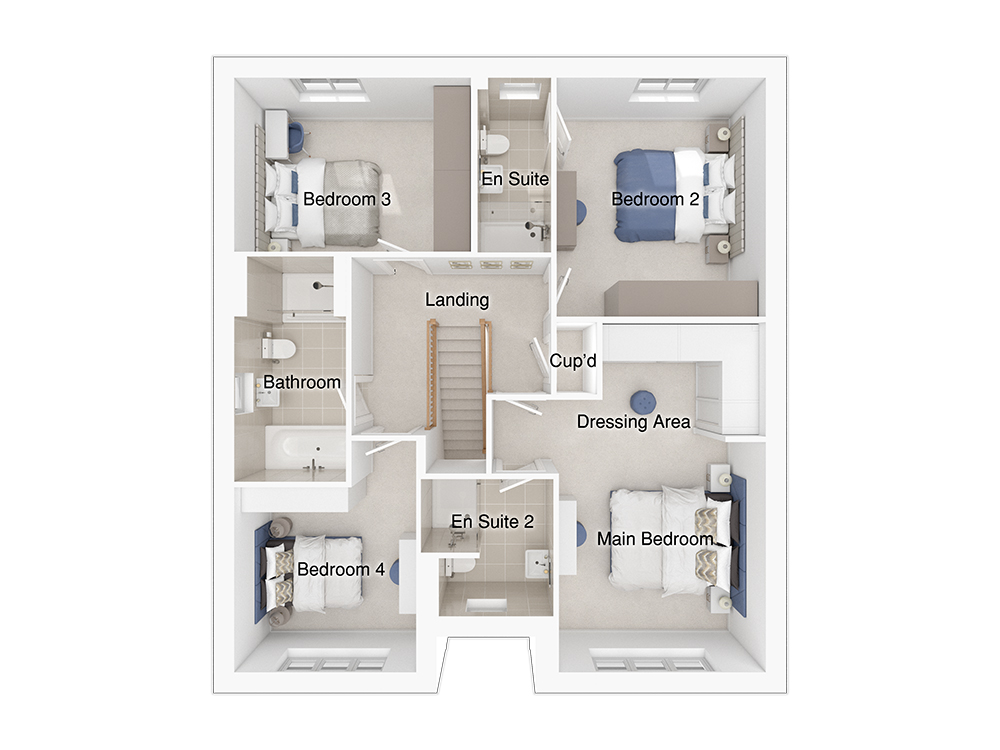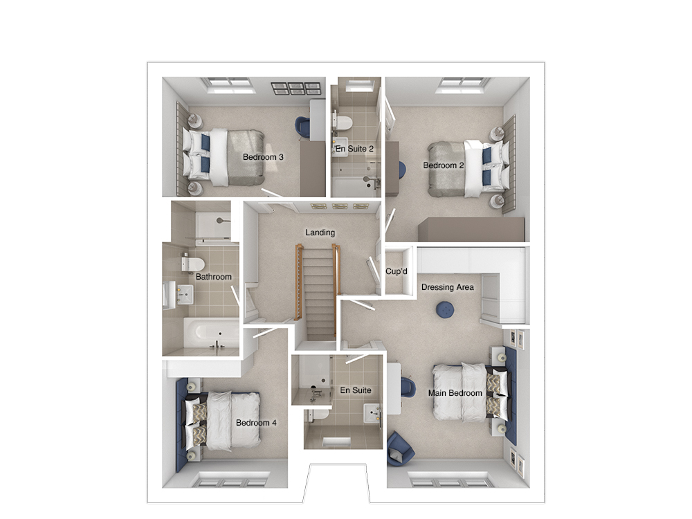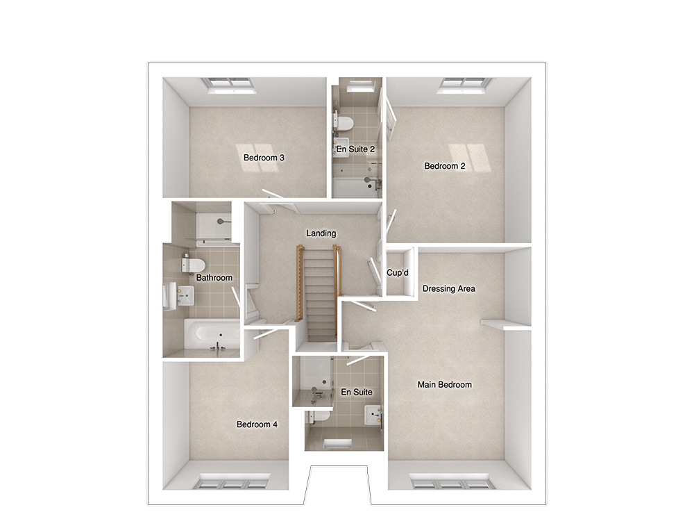 All four of the bedrooms are double, providing ample space and comfort. The home includes two spacious en-suites and a main bathroom featuring a stylish double-ended bath and a separate shower enclosure. The main bedroom is particularly impressive, with a wing wall that creates an ideal dressing area for a touch of luxury. The landing is highlighted by a feature staircase, adding elegance and character to the space.