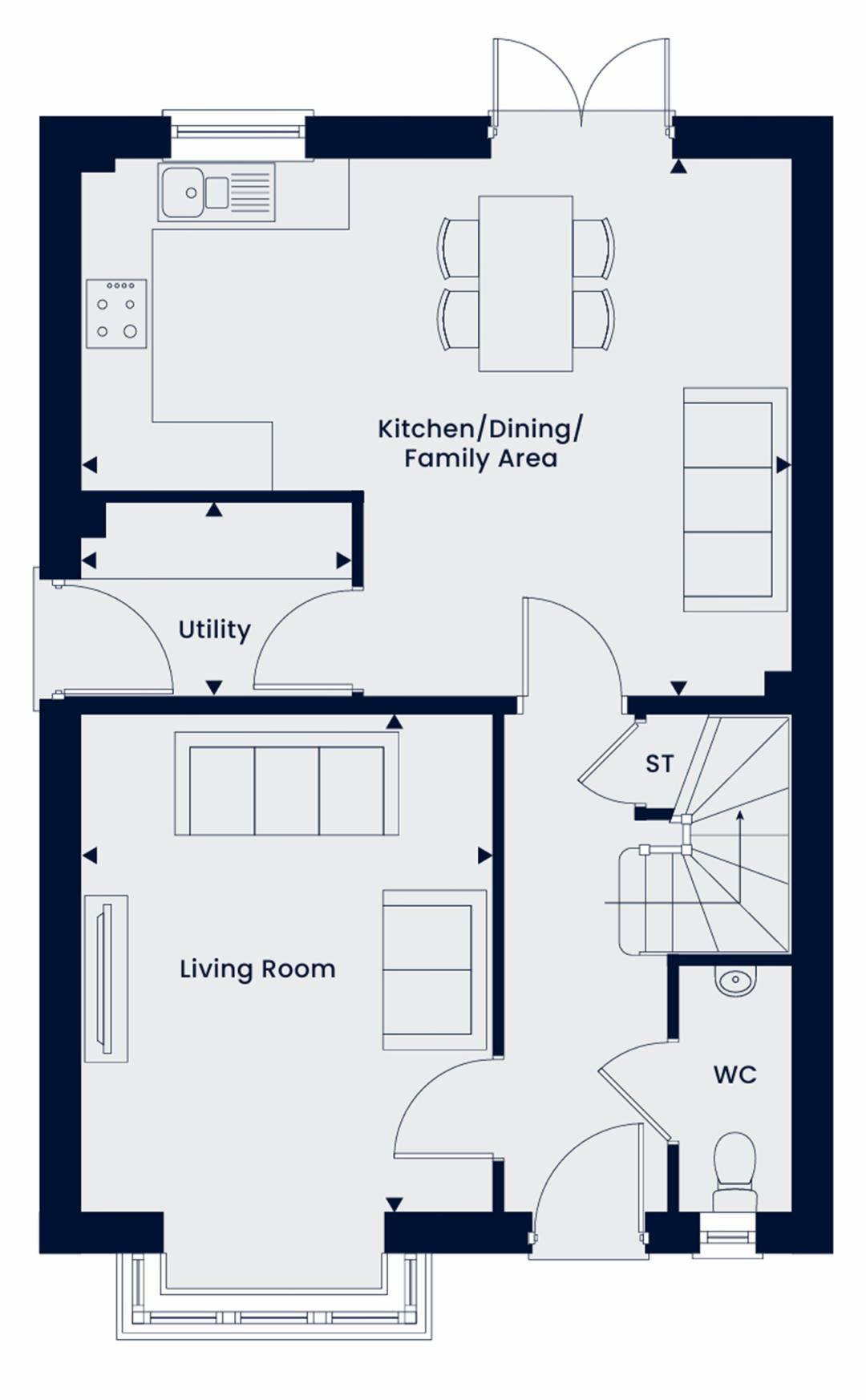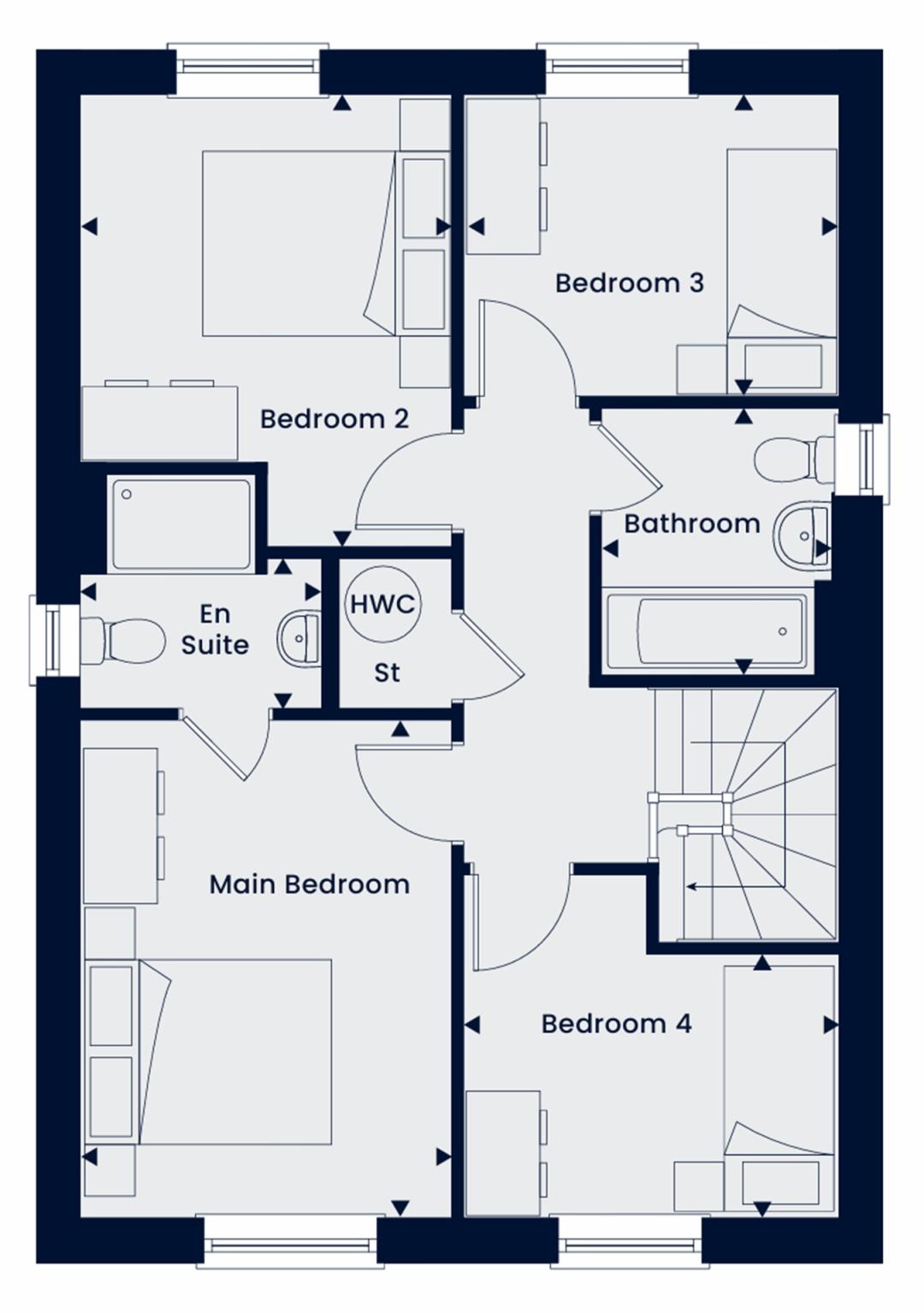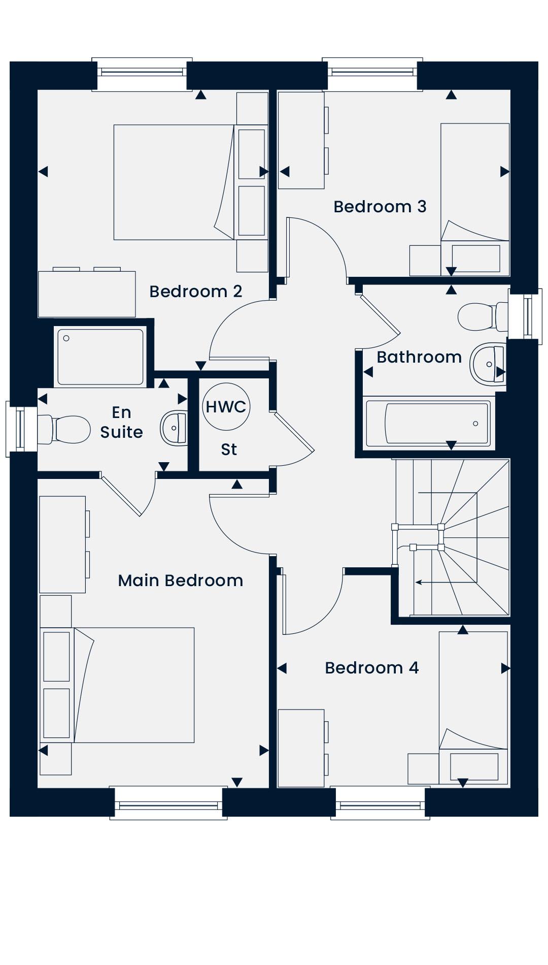 The ground floor of this four bedroom detached home features a sizable lounge with bay window, an open plan kitchen, dining and family room, a separate utility and WC. Upstairs, there`s four bedrooms, one with modern en suite and a family bathroom.