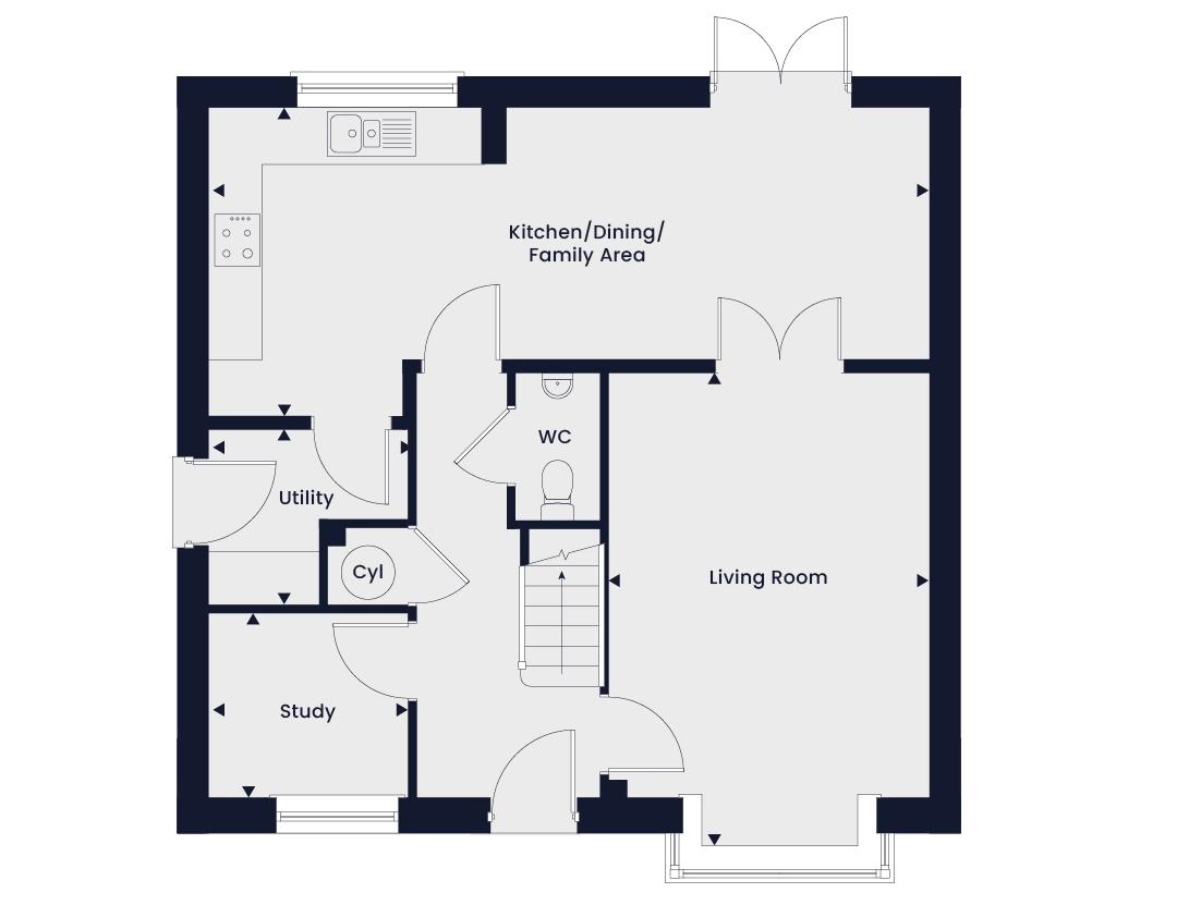 This four bedroom detached home features a separate study, living room with bay window and double doors leading to the open plan kitchen, dining and family area, which has double doors to the garden and separate utility on the ground floor. Upstairs you`ll find a main bedroom with en suite three further double bedrooms and a bathroom.