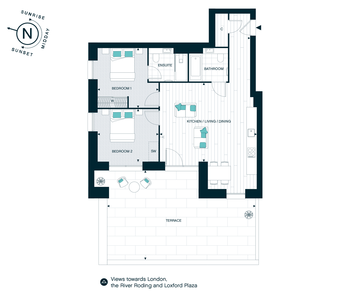 Reserve this spacious two bedroom apartment, positioned on the 4th floor with a spacious and private terrace. Featuring Weston Homes` fully inclusive specification, enjoy an open plan living area, a stylish kitchen with fully integrated appliances and a high-tech bathroom and en-suite.